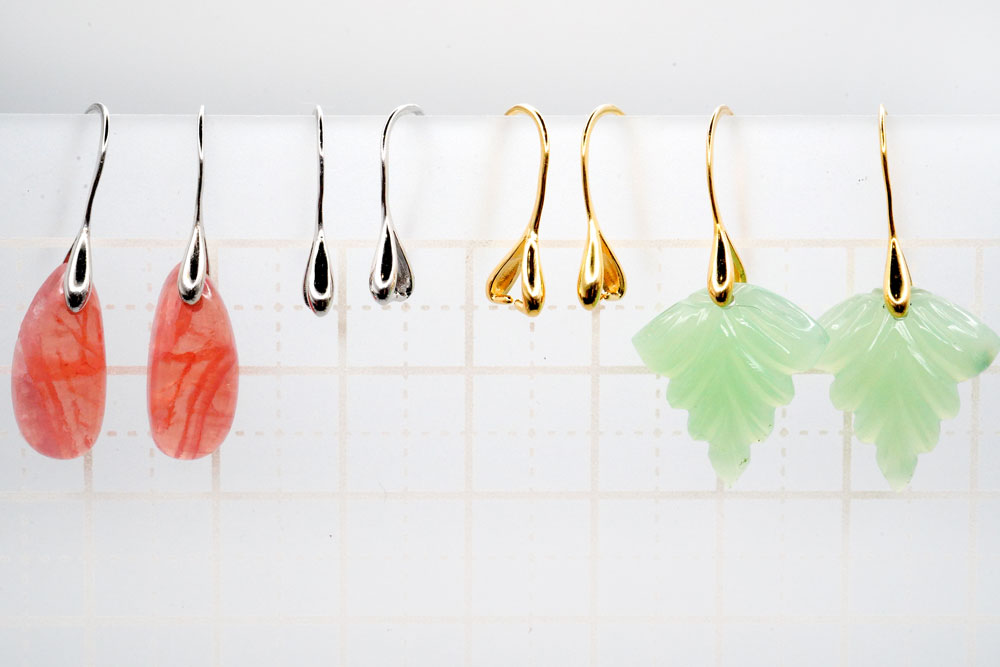 シルバーが柔らかいので、面の大きいシリコン付きプライヤーでしっかりと挟み硬化させるとピアスとして扱いやすいです。