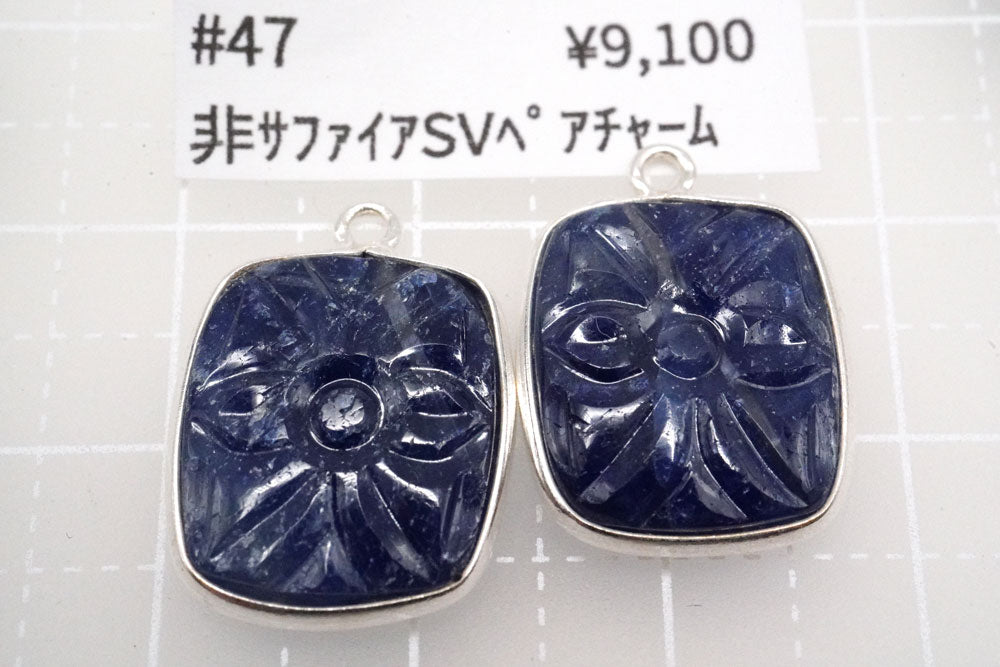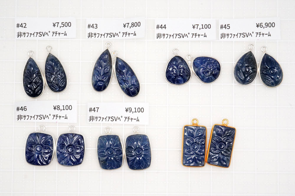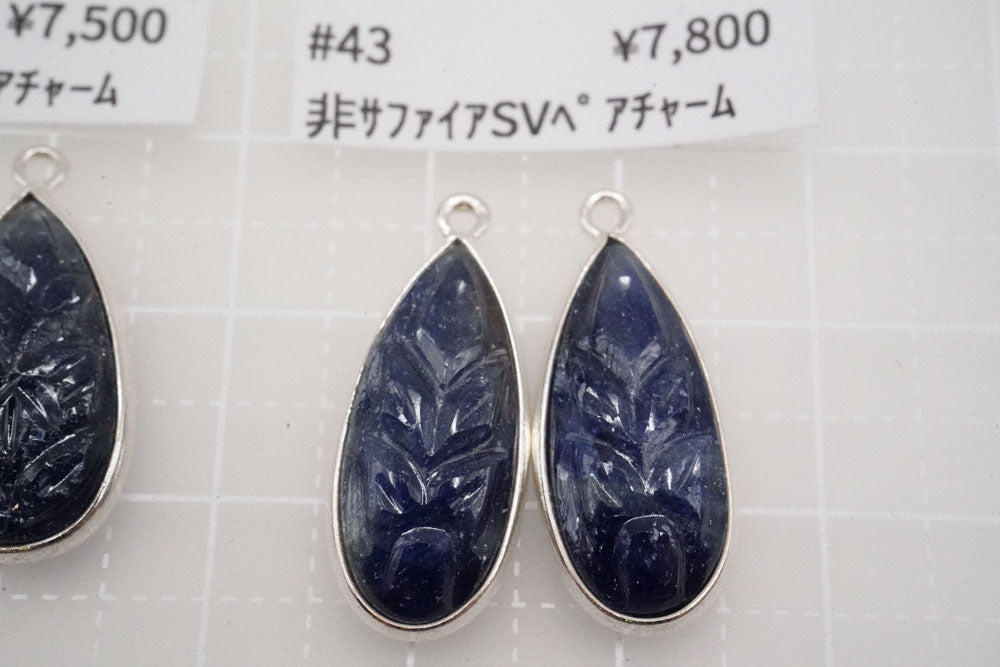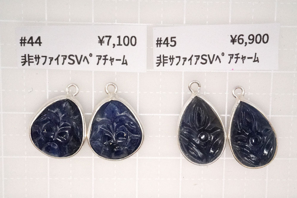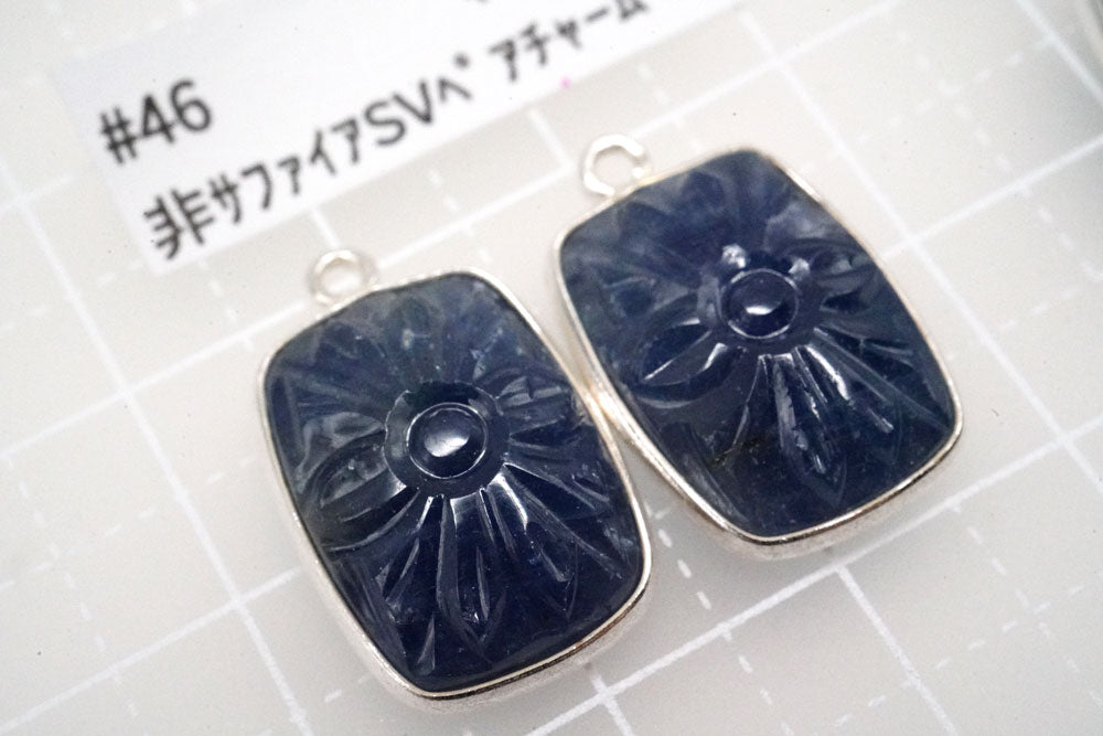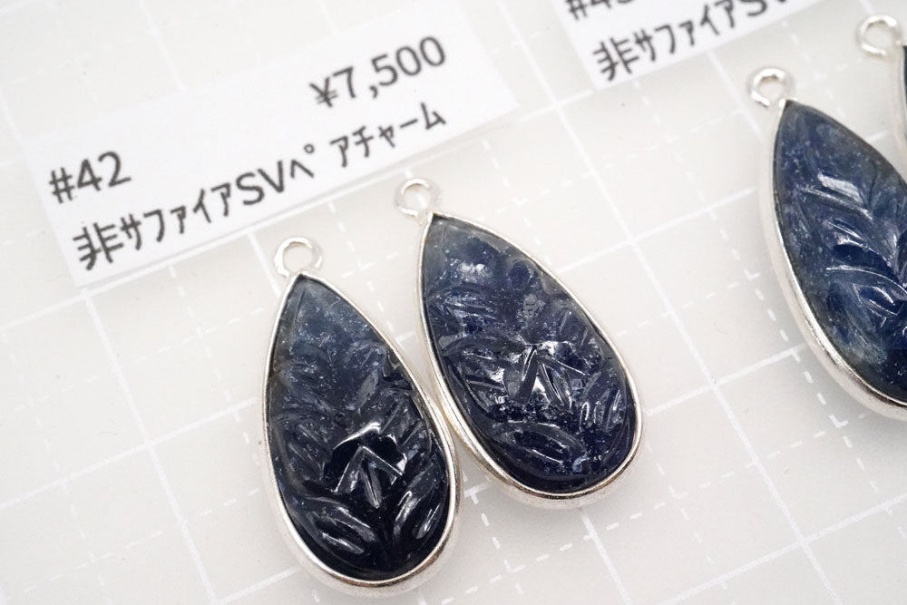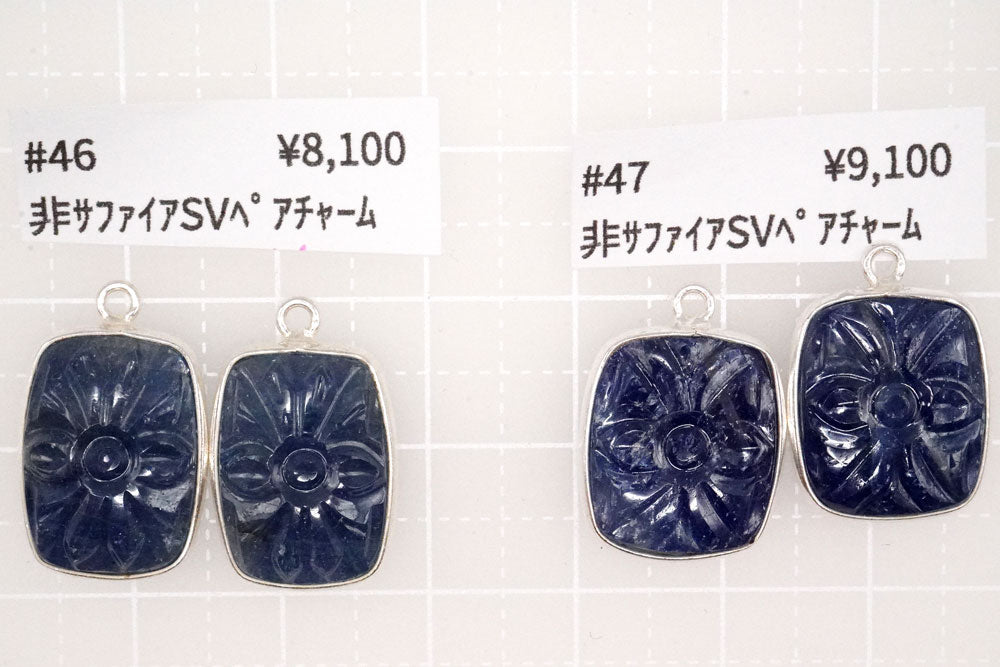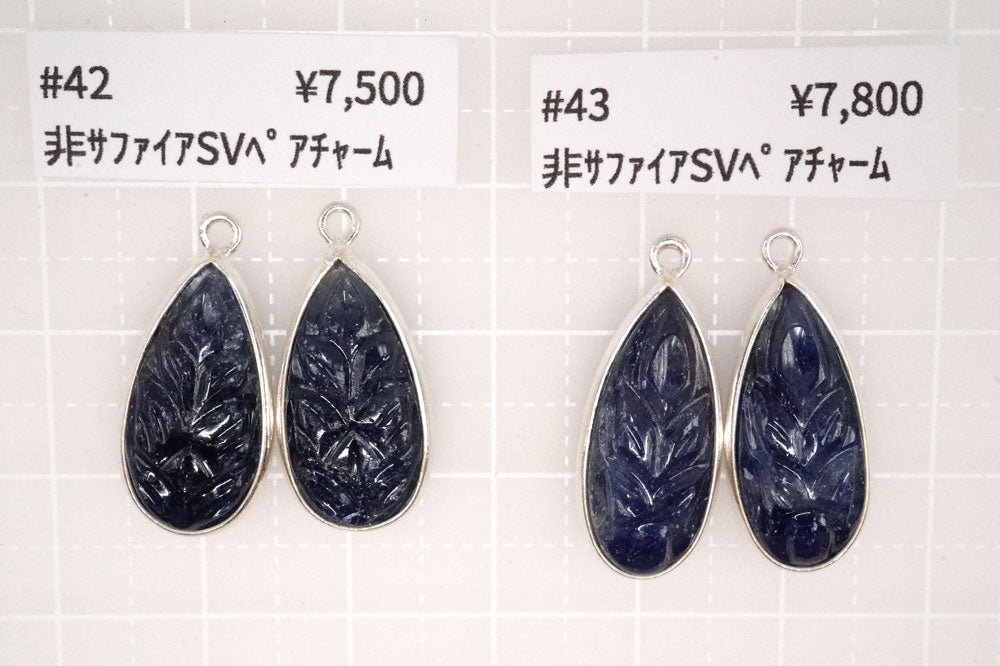 (#42-48)	非加熱 サファイア 銀枠ペア チャーム シルバー925