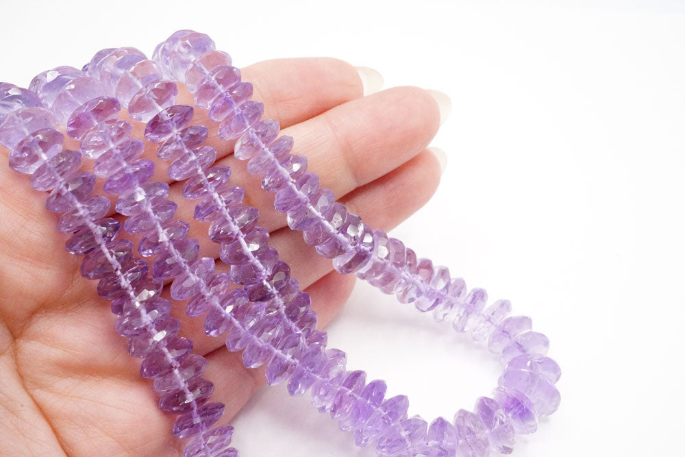 透明感あり。側面に稜線が出たジャーマンカットとも呼ばれるディスク型ビーズです。