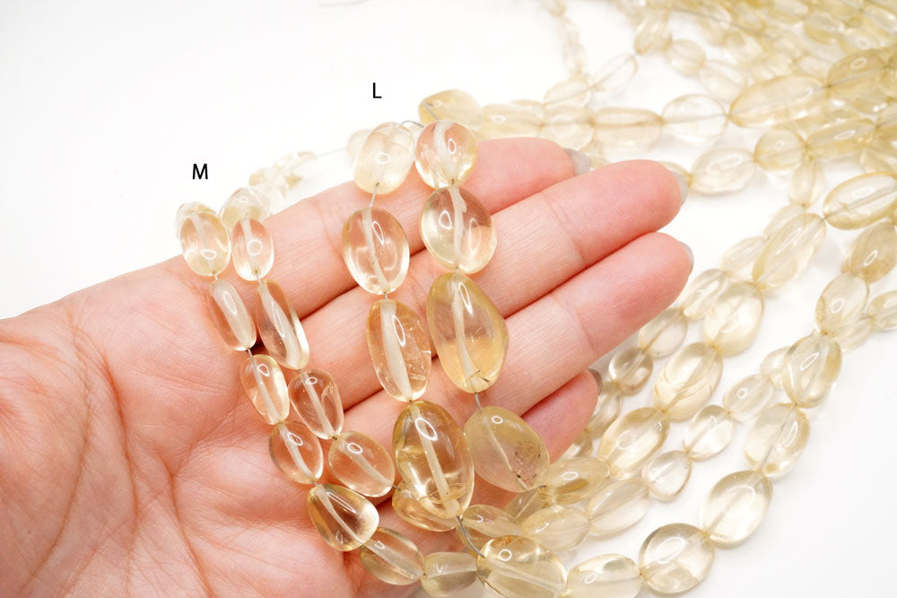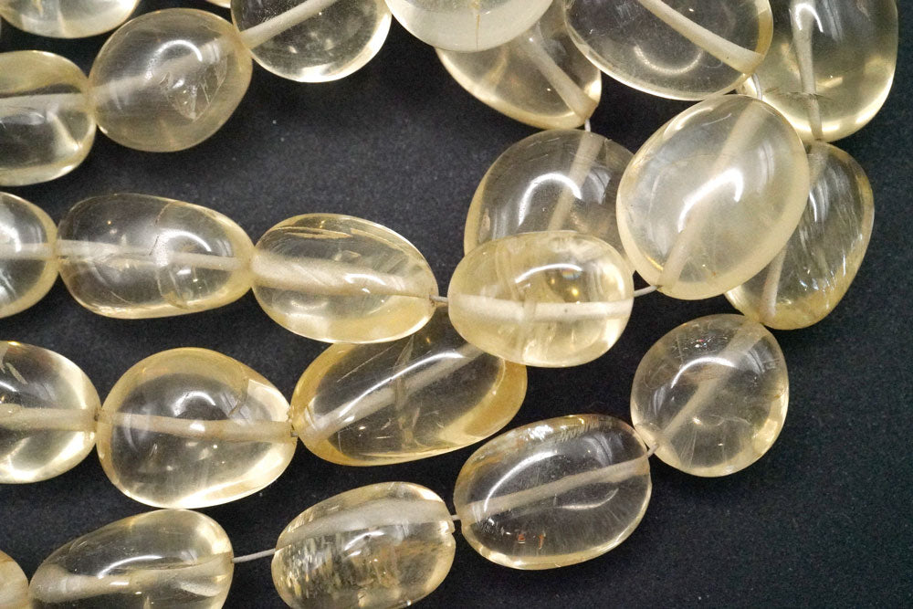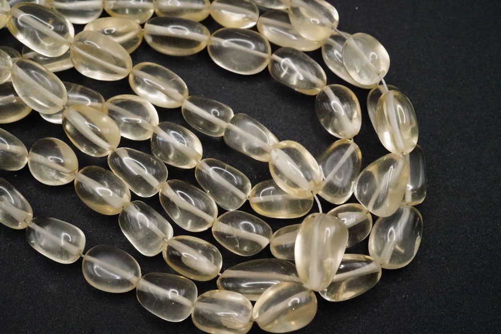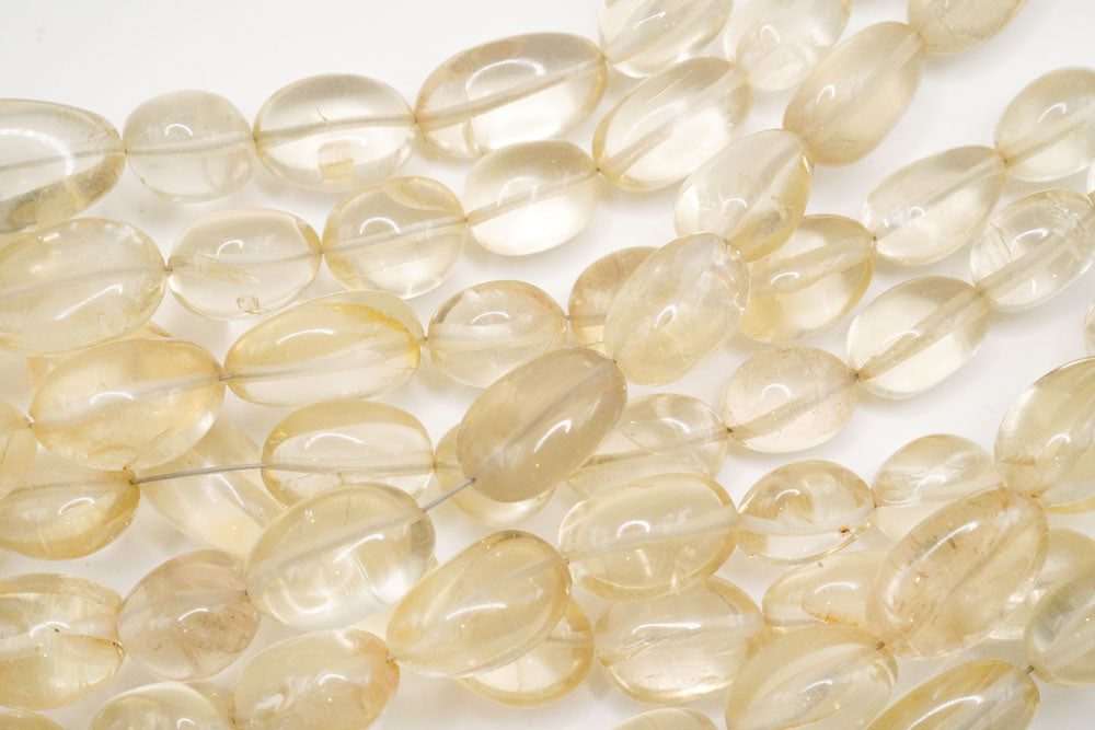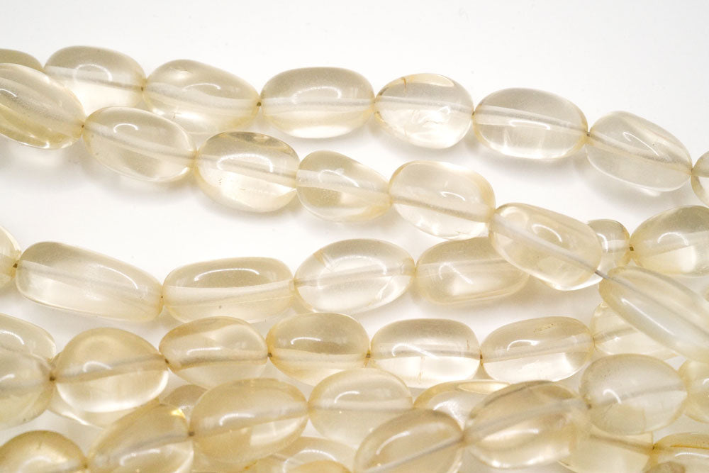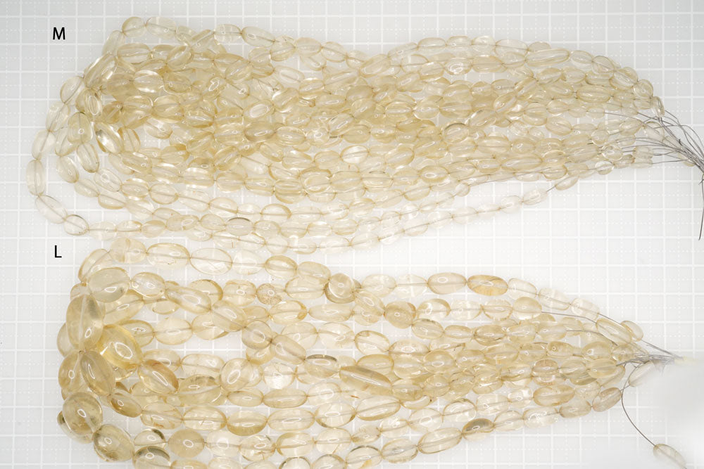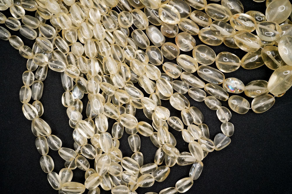 透明感のある原石から作った珍しいスキャポライトのビーズです。少し内部のキズが見られますが、あまり見かけない珍しい石です。石名の由来は結晶晶癖が柱上であることからギリシャ語で《軸(シャフト)・棒》を意味するscaposからです。