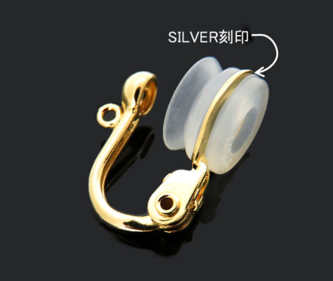 バネ無しで痛くなりにくい仕様です。バネ入りよりはグリップ力がソフトです。裏にシリコン付きで痛みを軽減します。シルバー製金メッキ付きのイヤリングパーツ。刻印付あり。