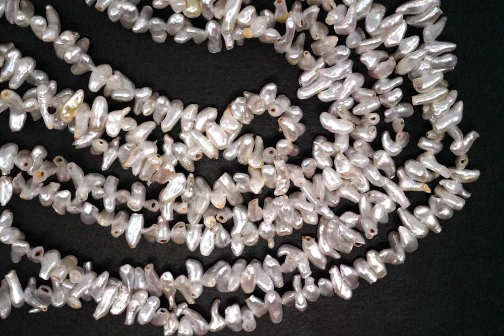 ・One grain size: about 5-5.5 x 6-8.5mm ・Hole size: estimated around 0.6mm ・Color: white pink (toning)