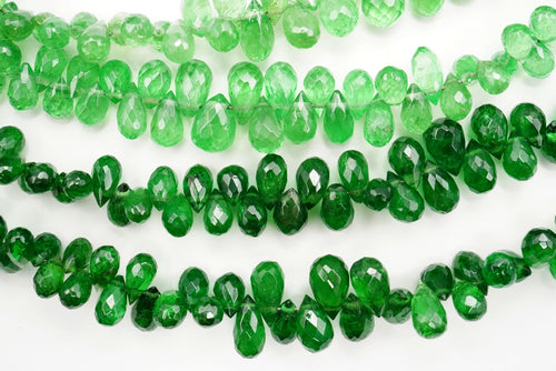 (ライト/ダーク) 宝石質 ツァボライト 19cm ファセット ドロップ グリーンガーネット