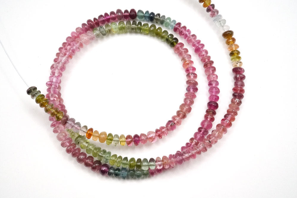 A beautiful tourmaline oval tumble mix bead made by polishing transparent rough stones. It is a gem-quality tourmaline that contains watermelon tourmaline, which is a mixture of pink and green, based on a vivid rubellite pink red with a row of about 45 cm. It becomes a very good quality continuous lumber with few inclusions and cracks.