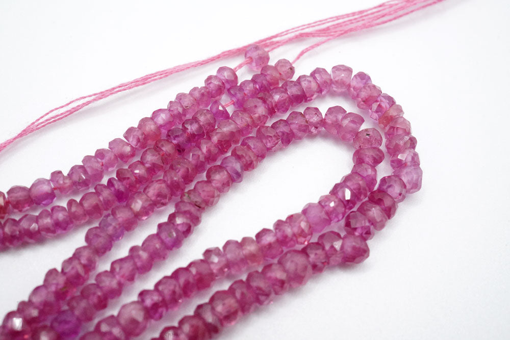 鮮やかなピンキッシュレッドのルビーボタンカットビーズです。色や光沢の改善を目的としたグラスフィルド(鉛ガラス含浸処理/GF)が行われています。