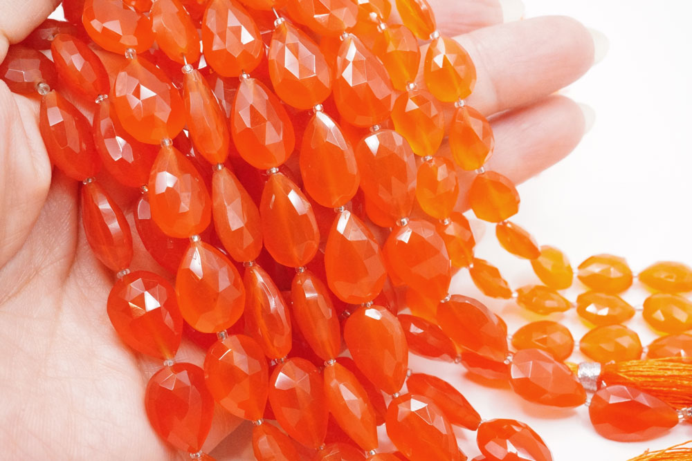 染加工。太陽のようなオレンジのカーネリアン。艶やかで存在感も抜群。明るくエネルギッシュな印象のストーンです。