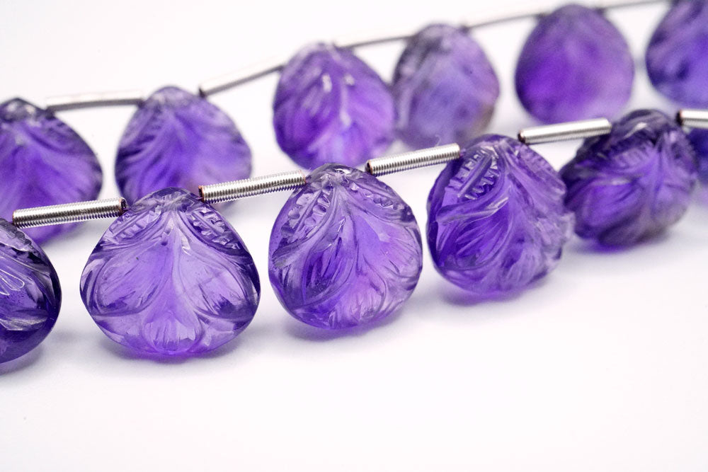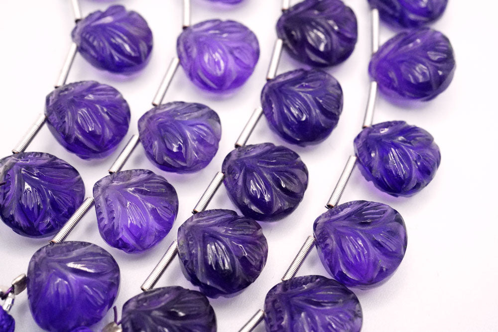 ぷっくりとしたマロンシェイプに葉っぱのカービングを施した美しいビース。