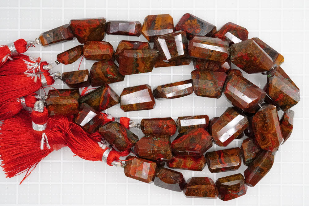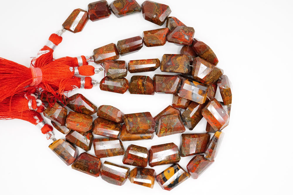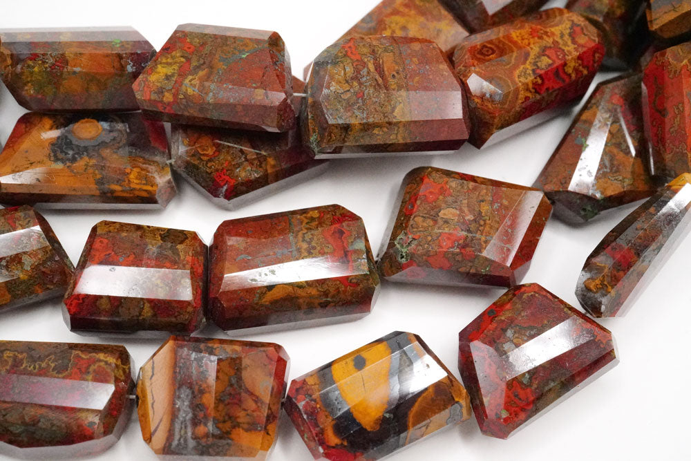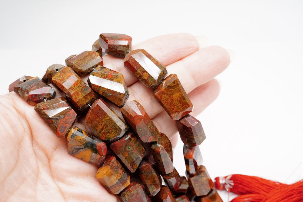 オーダーした大きくゴロッとしたタンブルカットのビーズ。ステップカットを全面に入れたとっておきのタンブルカットです。艶のある秋色のビーズです。