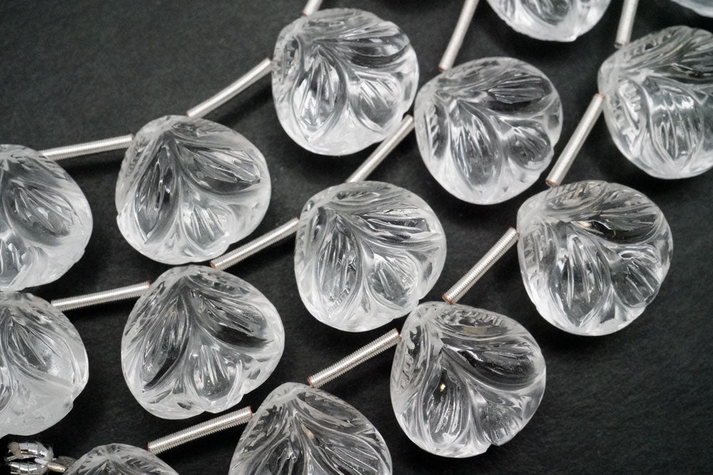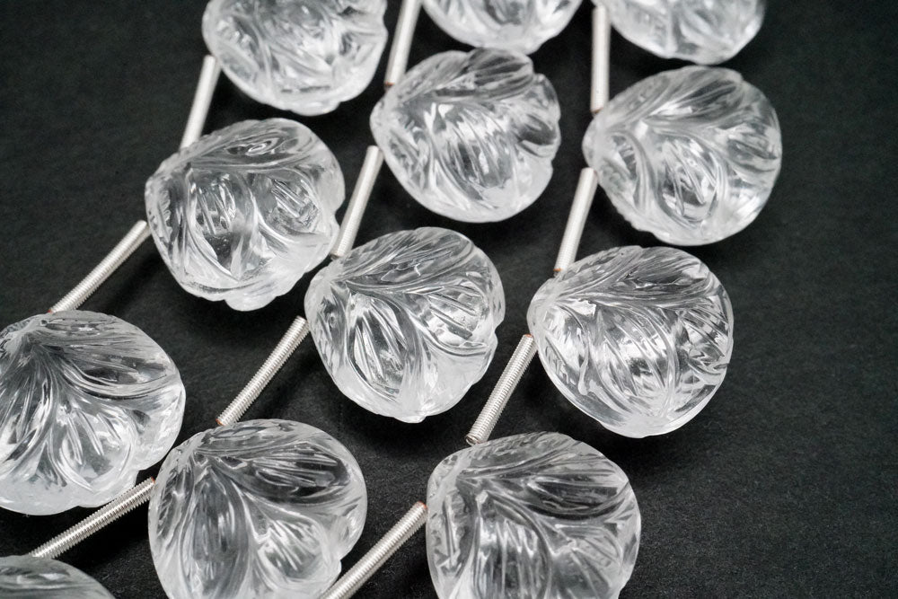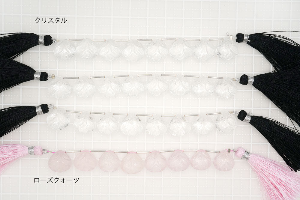 ぷっくりとした厚みのある原石に葉っぱのカービングを施した美しいビーズです。