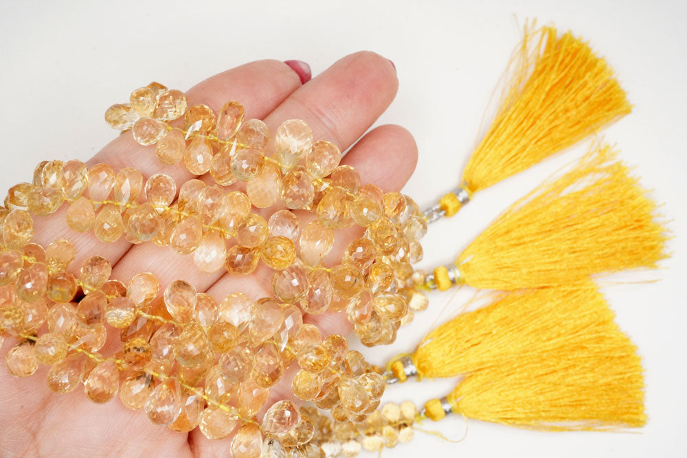 うるっとしたはちみつ色のシトリンのドロップ。色の濃淡ございます。ルース専門店にオーダーして作ってもらった宝石品質のビーズです。