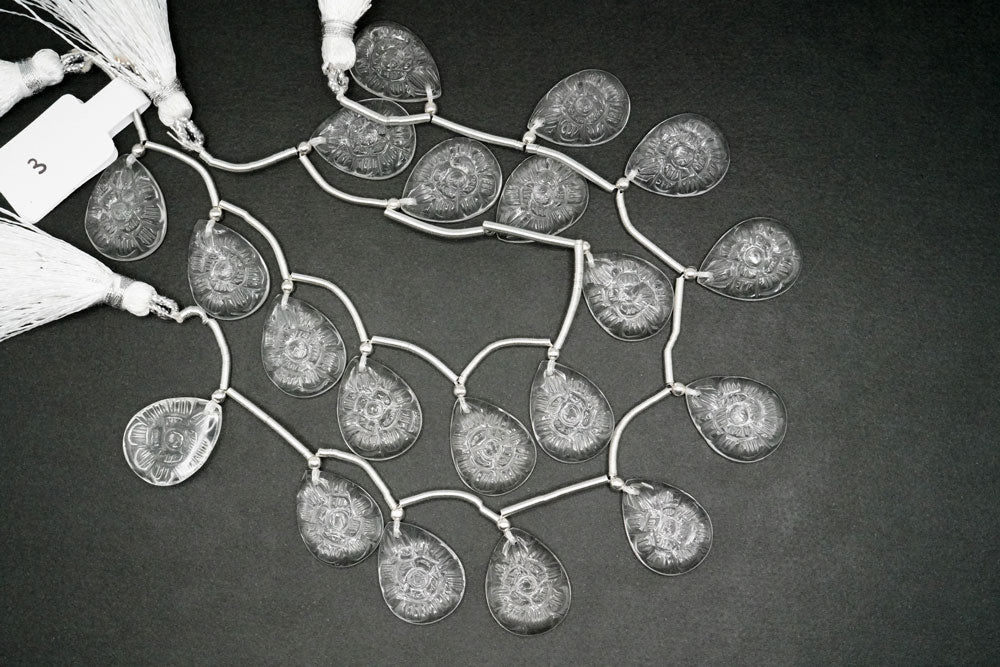 • 画像をギャラリービューアに読み込む, (2/10pc)宝石質 クリスタル フラワーカービング ペアシェイプ