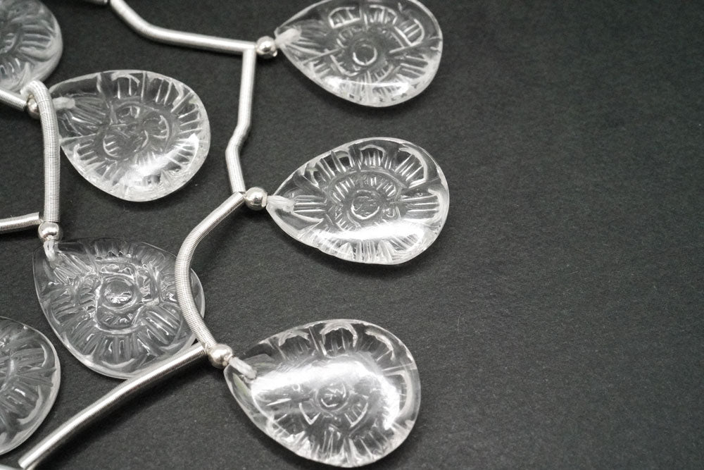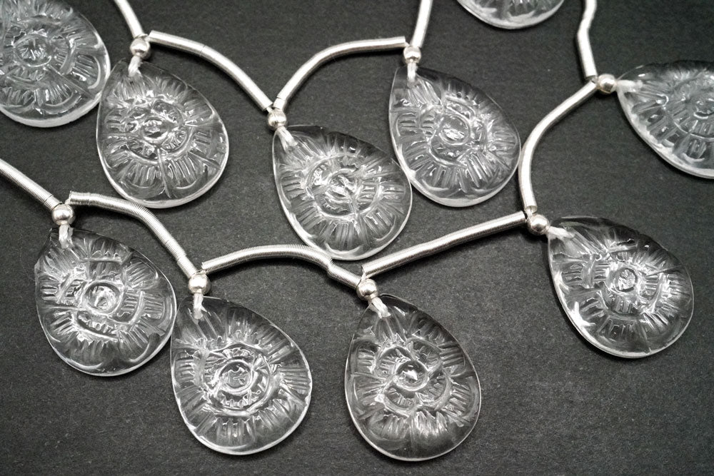 (2/10pc)宝石質 クリスタル フラワーカービング ペアシェイプ