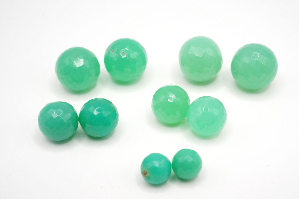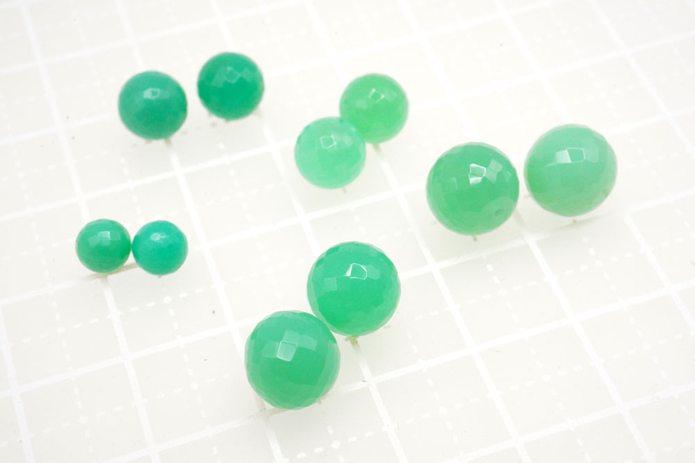 さわやかな青リンゴのような色のクリソプレーズのマイクロカットの片穴あきルースです。
