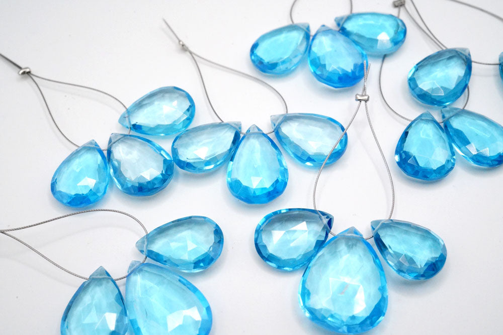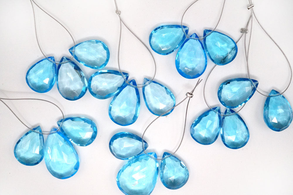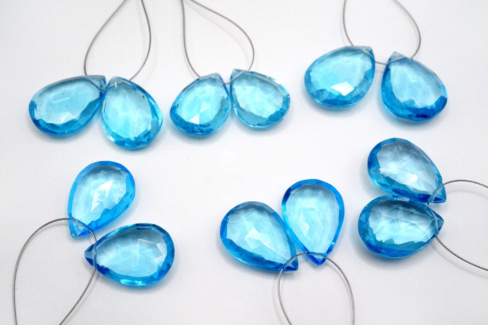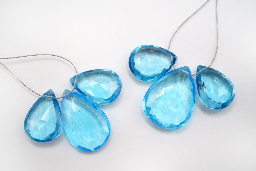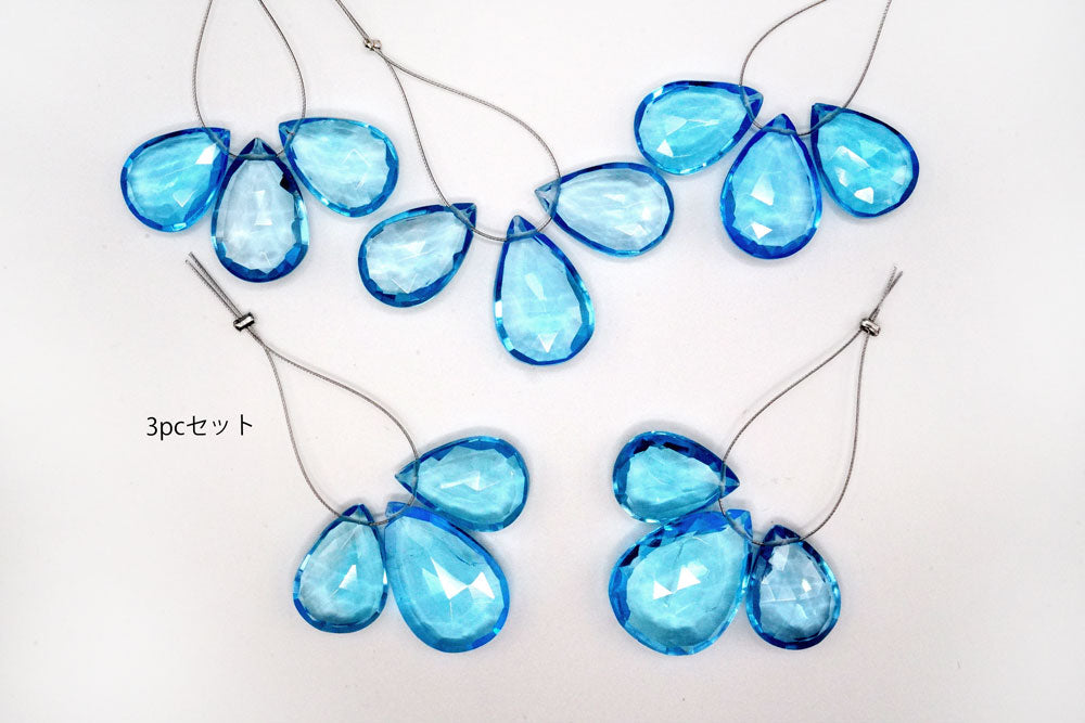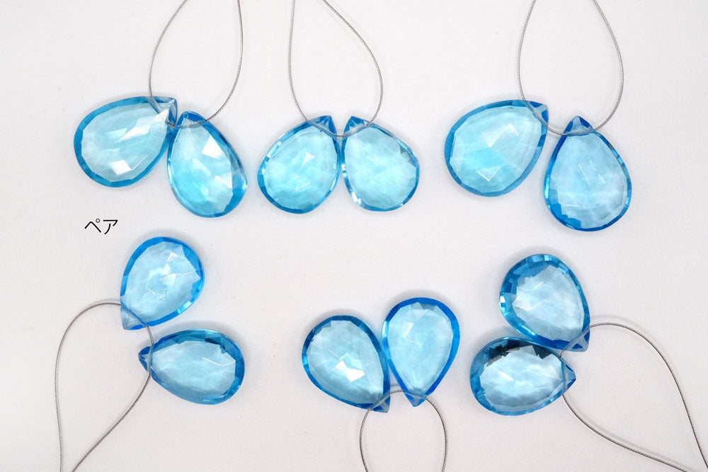 (ペア/3pcセット)スイスブルー トパーズ ファセット ペアシェイプ