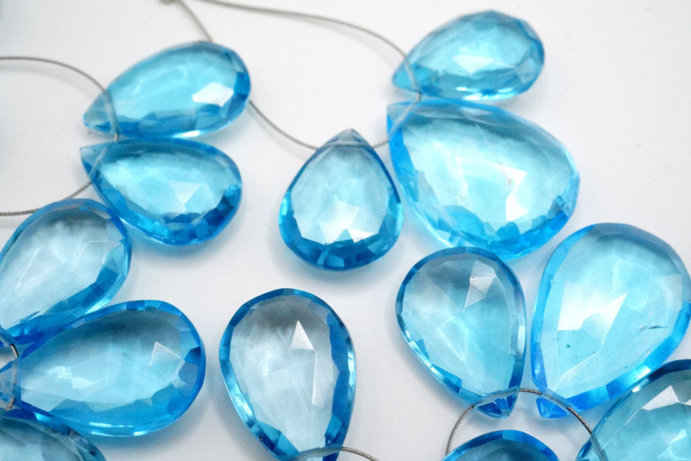 透き通るような鮮やかな青が目を惹く、スイスブルートパーズの宝石質ビーズ。透明度・発色ともに非常に優れたトップグレードのビーズを厳選。ファセットカットが施された粒は、光を受けるたびにキラキラと眩い輝きを放ち、ジュエリーに華やかさを添えます。スイスブルートパーズはホワイトトパーズを照射処理によりブルーにした石です。