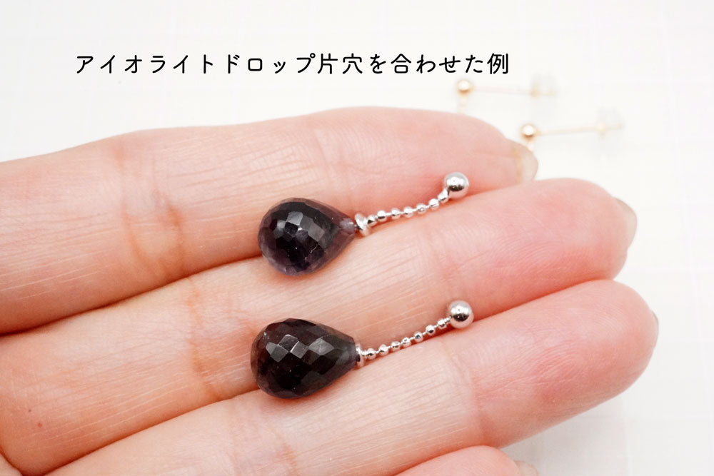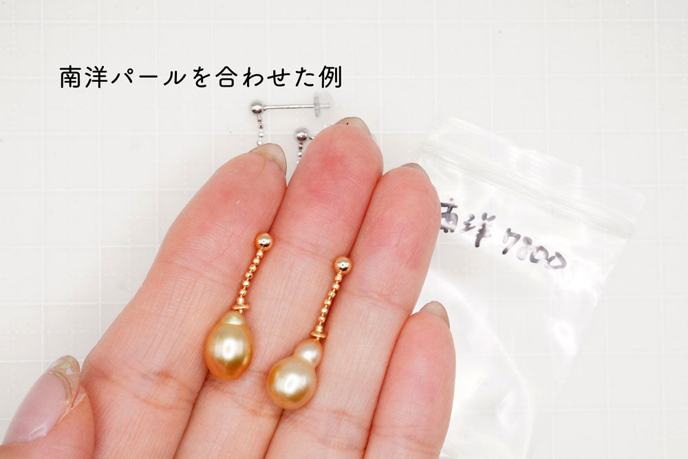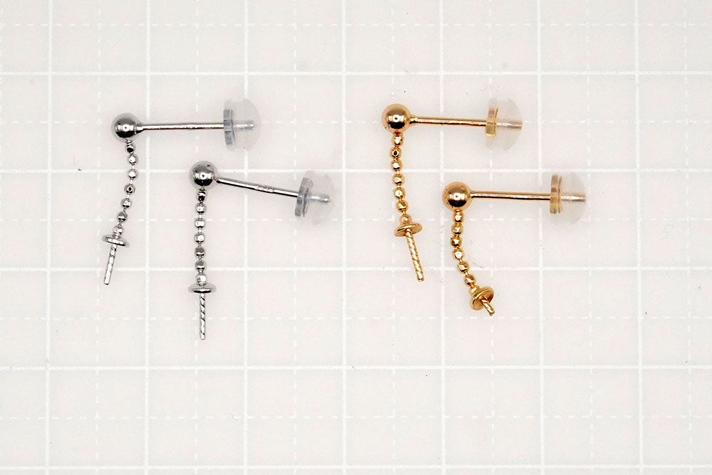 中国産のシルバーピアス。チェーンの付いた高見えスタッドピアスパーツです。突き刺し付きのため、片穴のパールや天然石ルースを接着してお使い下さい。