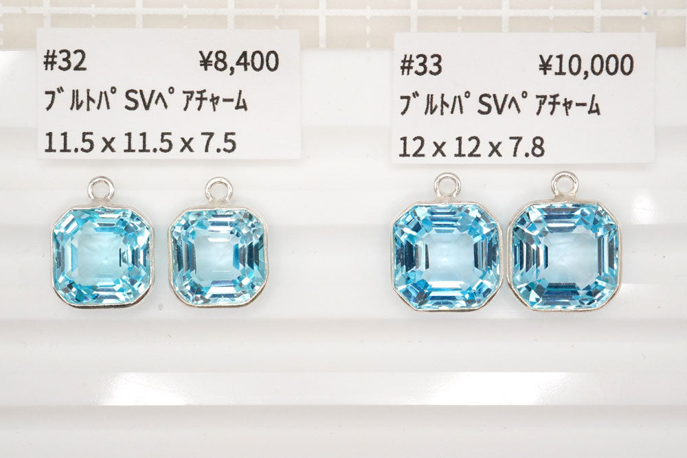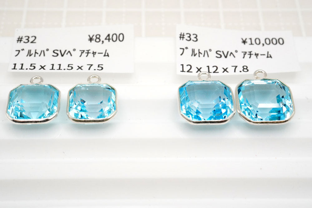 8/20(#32.33)宝石質 ブルートパーズ 銀製 チャーム 銀製フレーム