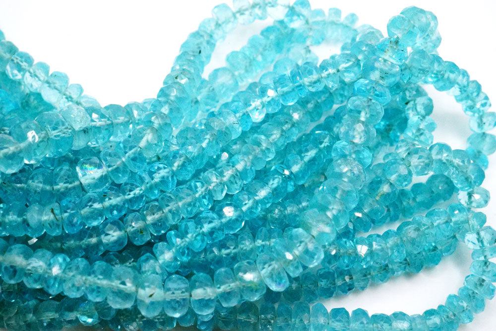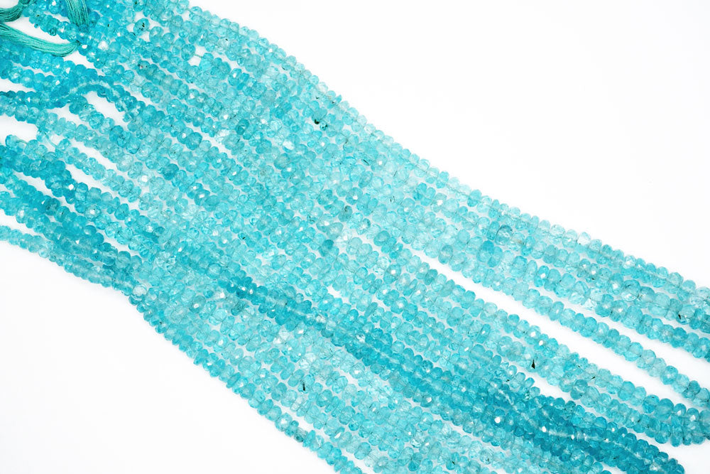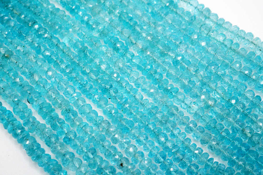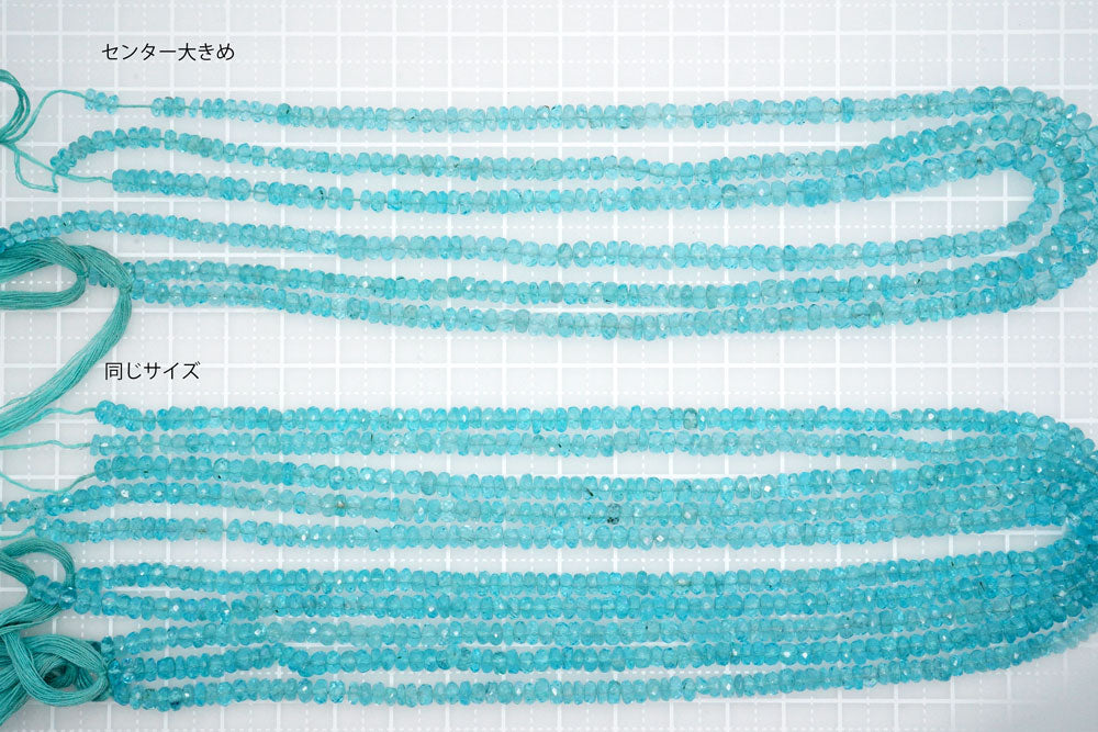 透明感あり、厚みのあるスカイブルーアパタイトのビーズ。原石もカットもきれいです。