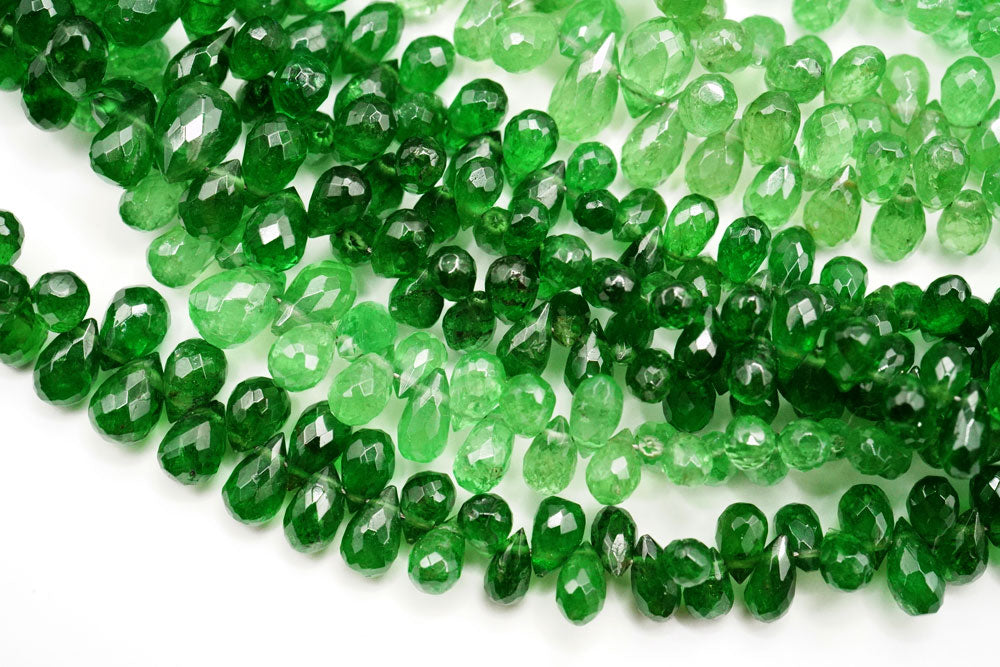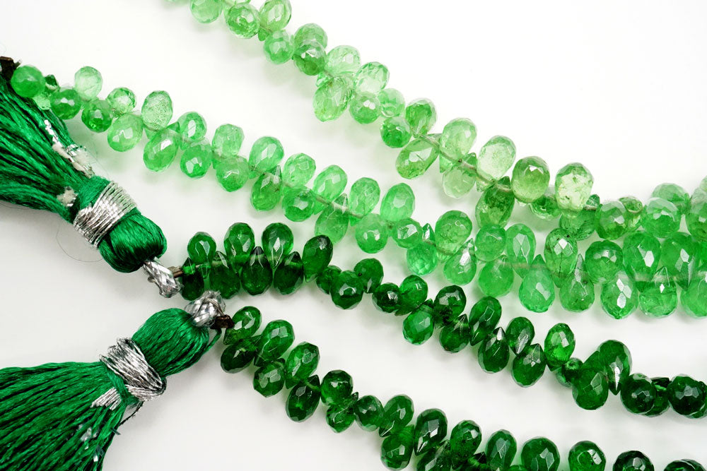 (ライト/ダーク) 宝石質 ツァボライト 19cm ファセット ドロップ グリーンガーネット