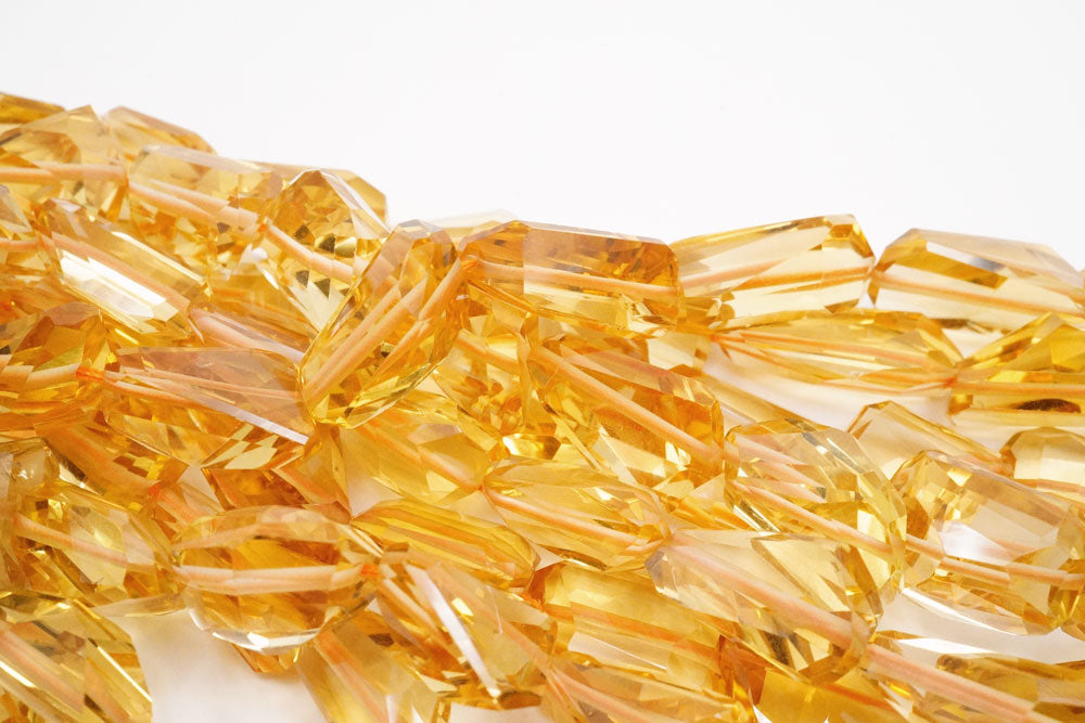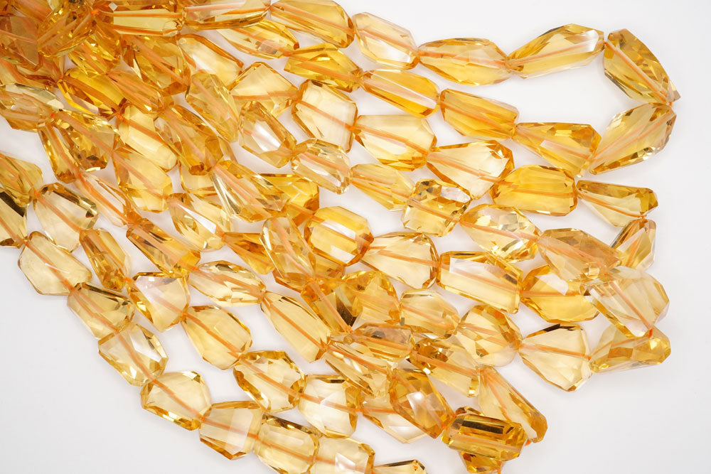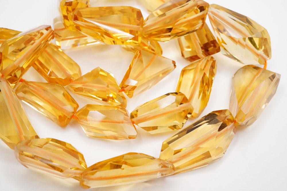 透明感抜群で、目立つキズのない宝石品質のタンブルカットビーズです。ザクザクとランダムにカットが入った美しい連材です。とっておきの商材をお探しの方に。