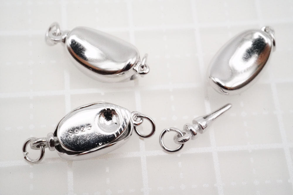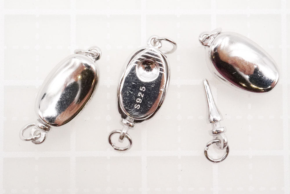 中国産、シルバー製のビーンズ型の定番クラスプ。7mm程度の冠婚葬祭用のパールによく使われますが、こちらは小さいサイズになります。