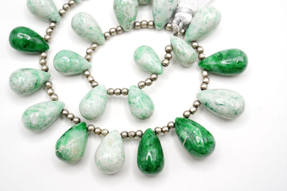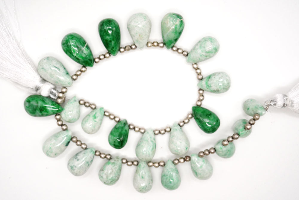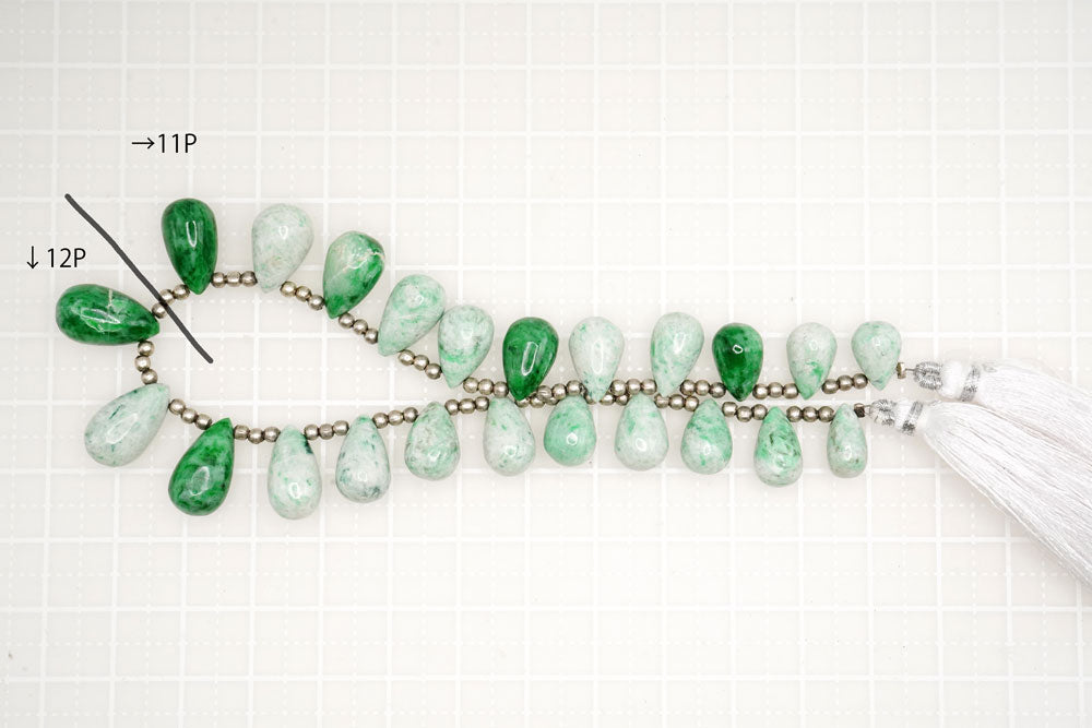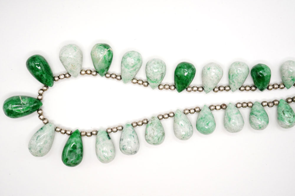 モーシッシの名前はミャンマーのマウシットシット(Maw sit-sit)渓谷が産地であることに由来。マウシッシは翡翠輝石とよく似ているコスモクロアが主成分になり、アンフィボール、クローライト、フェルドスパー等を含む混合石だということです。