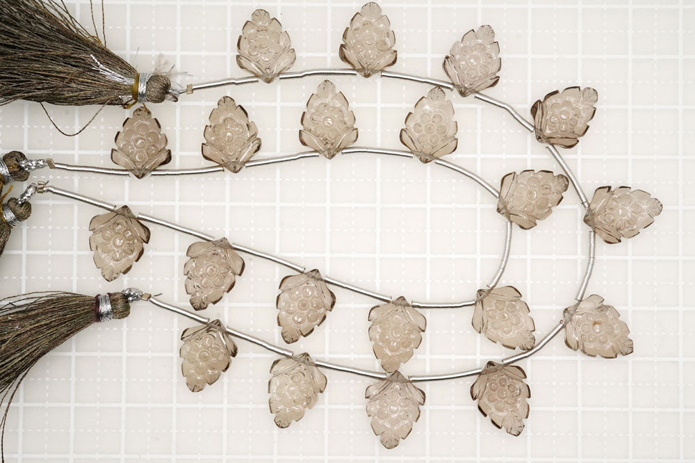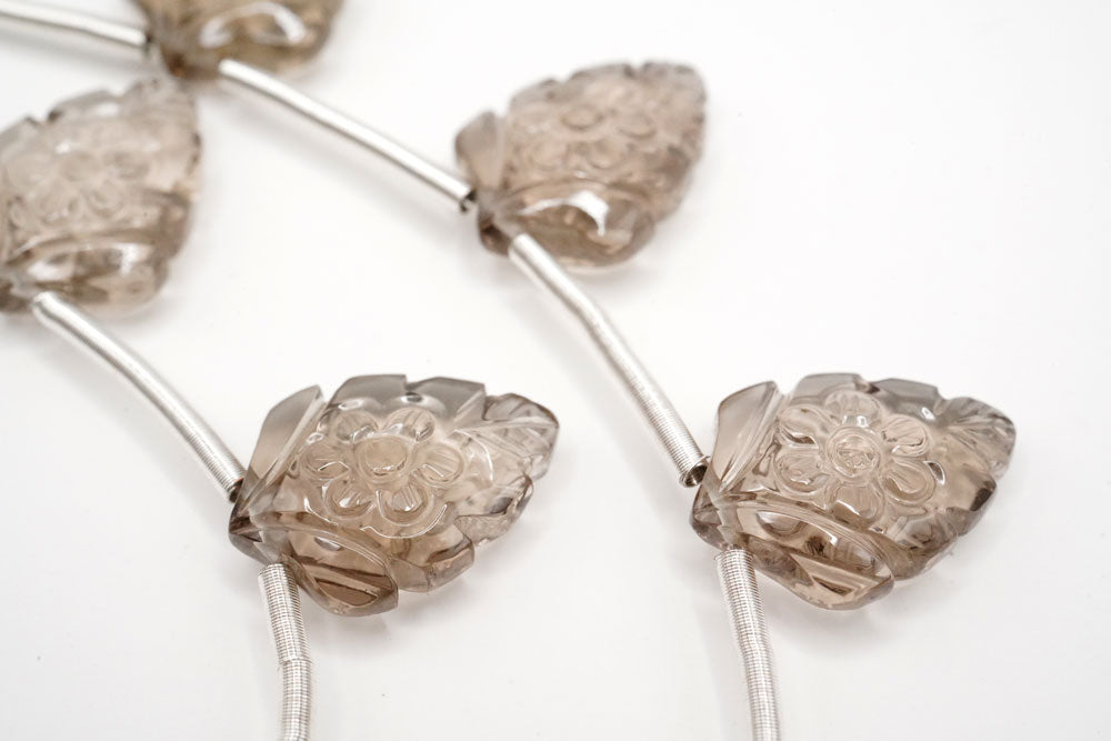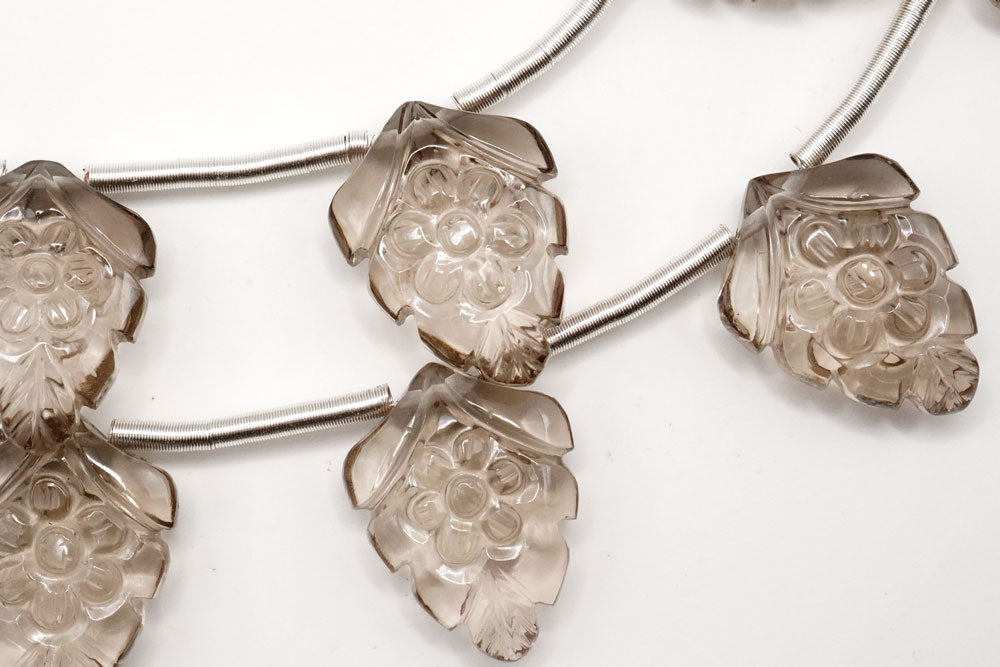 (2pc/1連)スモーキークォーツ フラワー カービング