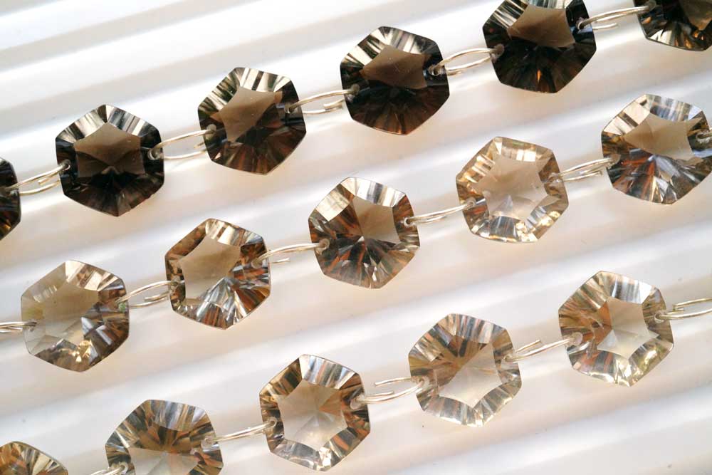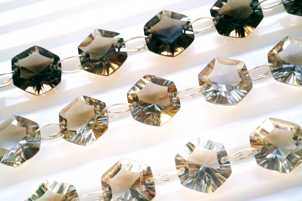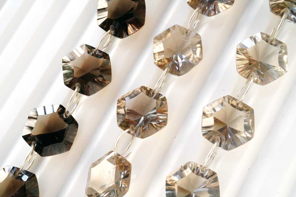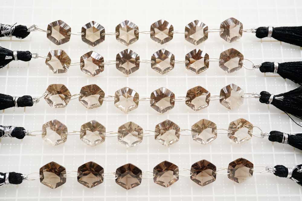 (ライト/ダーク)スモーキークォーツ コンケーブカット ダブルホール ヘキサゴン