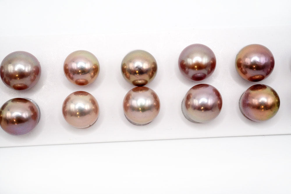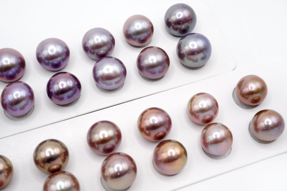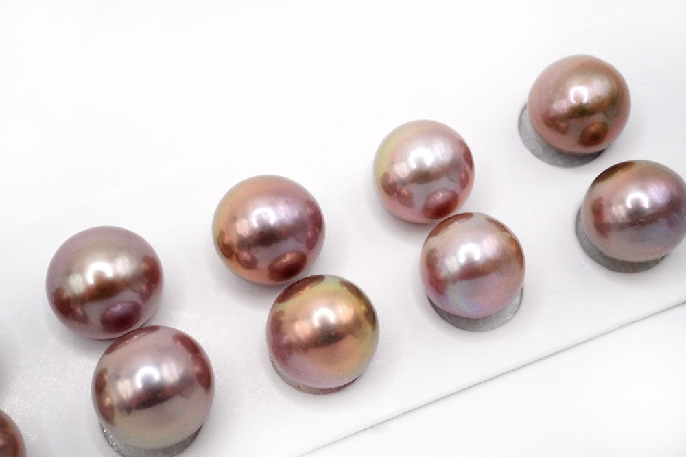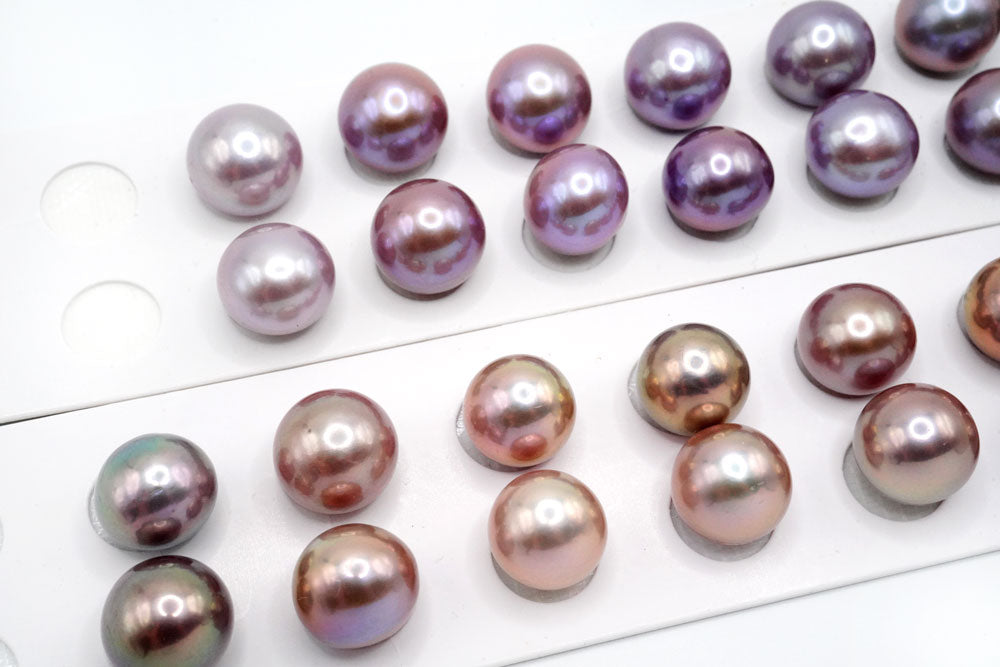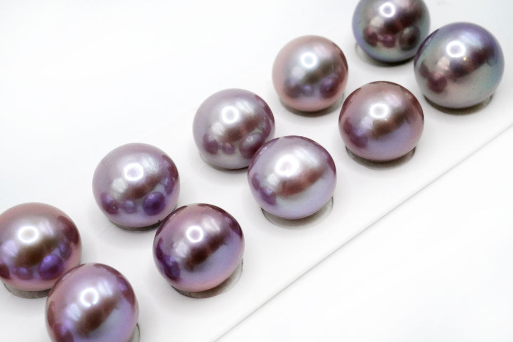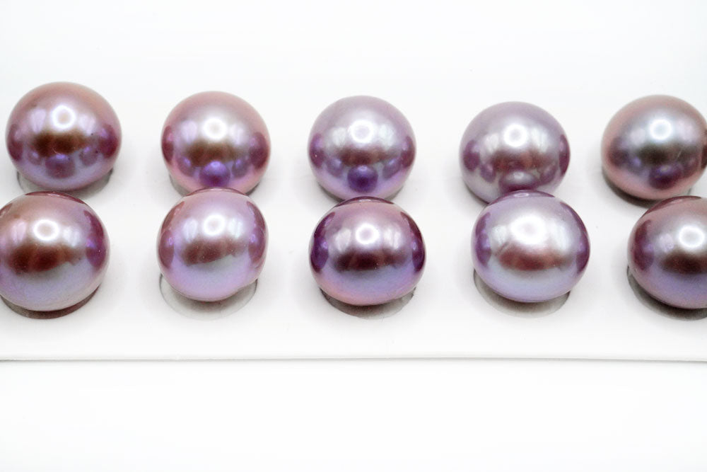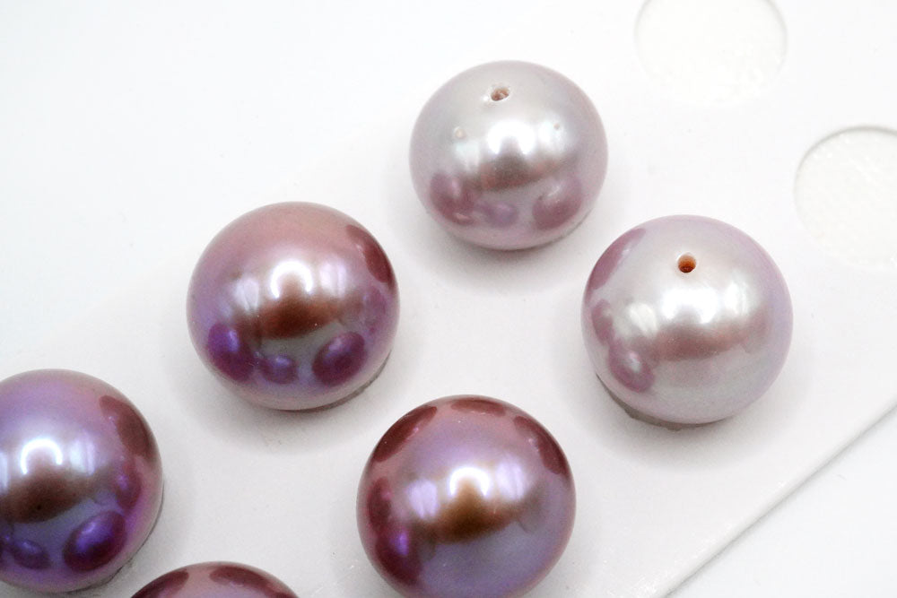 天然色の大きなペアルース。片穴あきでスタッドピアスやイヤリング金具に接着してお使いください。正面から見ると丸く見えますが、ボタン〜バロック型。エクボ少し入ります。 淡水パールはイケチョウガイやヒレイケチョウ貝を川や湖の淡水で養殖してできたパールです。多くの場合は1つの貝から数多くの真珠が生成されます