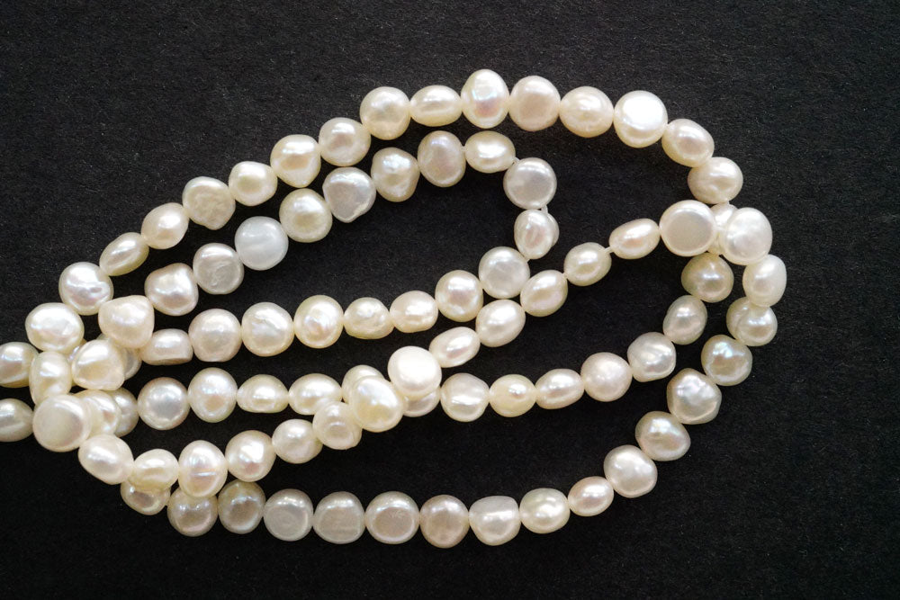 テリの良い日本のオールドストック品。小粒のため何連か重ねてお使いいただくのも素敵です。裏面は平らになっています。