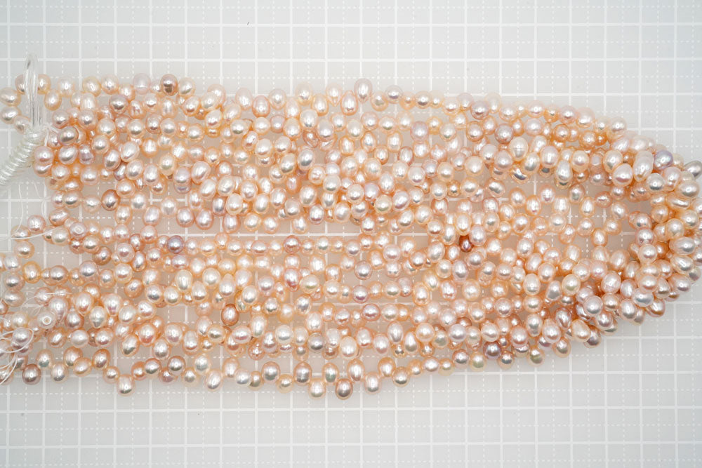 淡水パール 天然色 オレンジ ゴールド 40cm クレオ穴 ライス