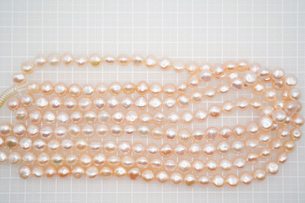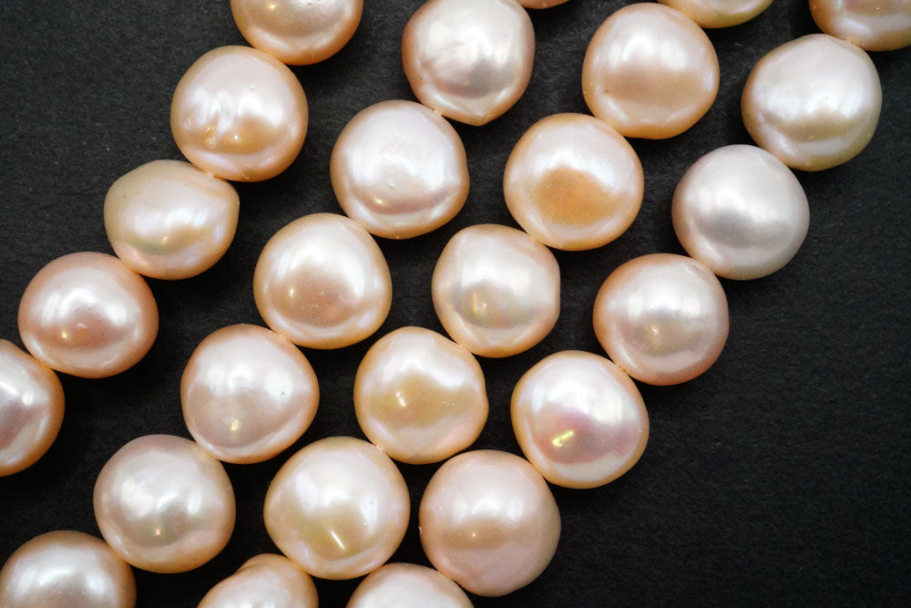 てり艶、コスパの良いパールの連材です。フラットバックの粒を含みます。