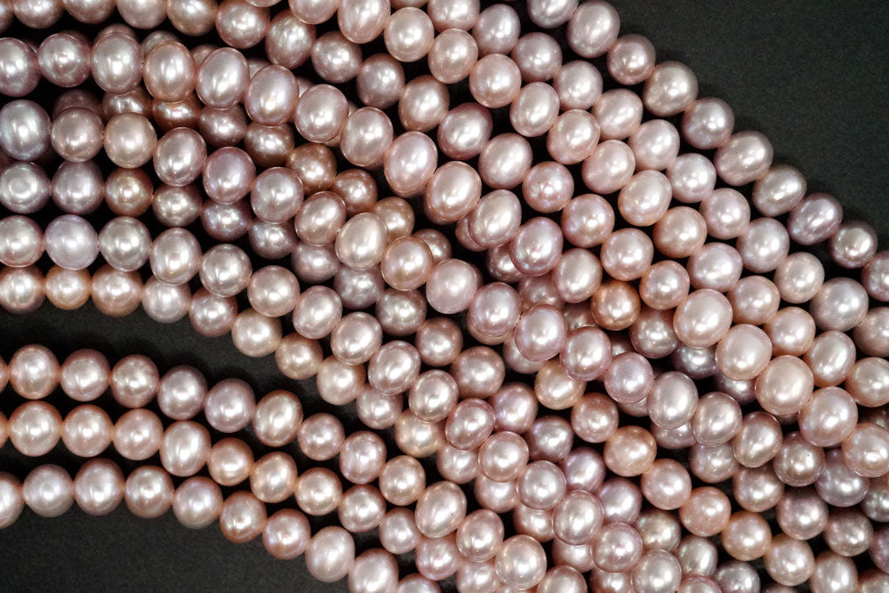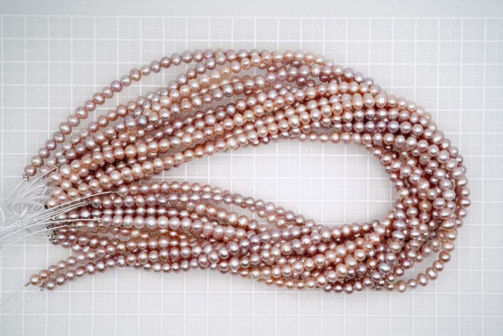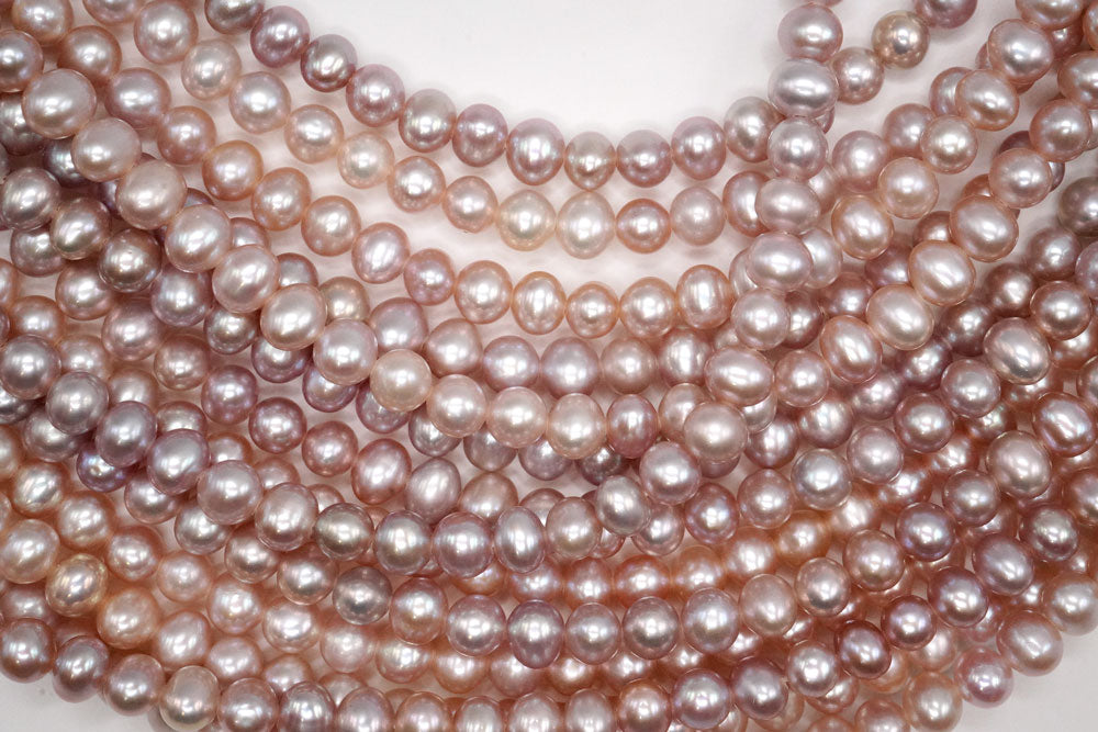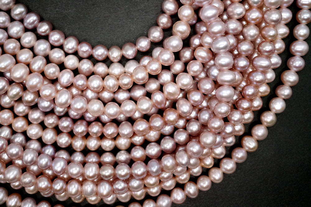 天然色、てりつやの良い無核のポテトパール。ぷっくりとした横長の可愛らしいパールです。