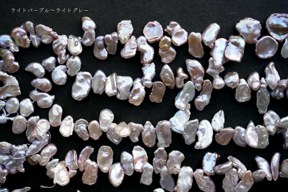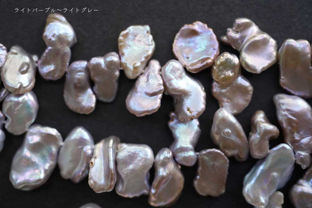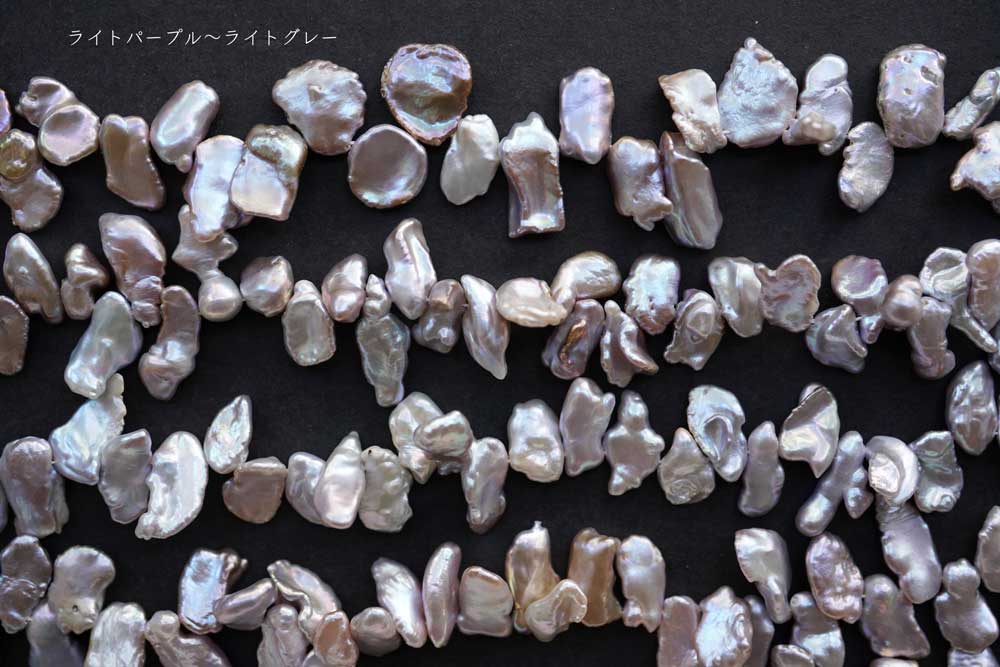 (ライトパープル/アイボリー〜ライトピンク)淡水パール 天然色 39cm ケシ風 バロック クレオ穴
