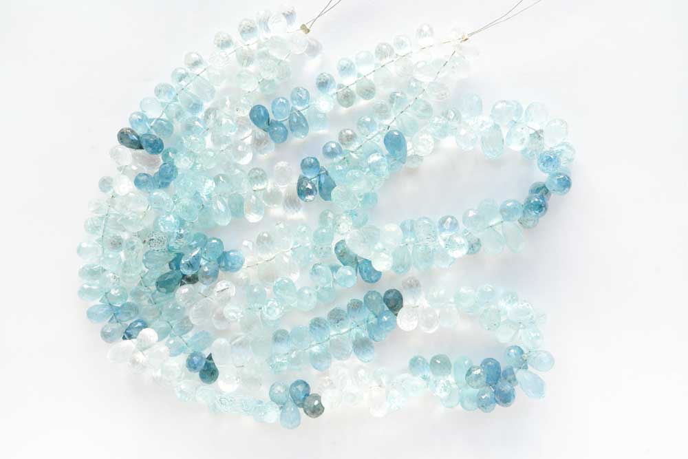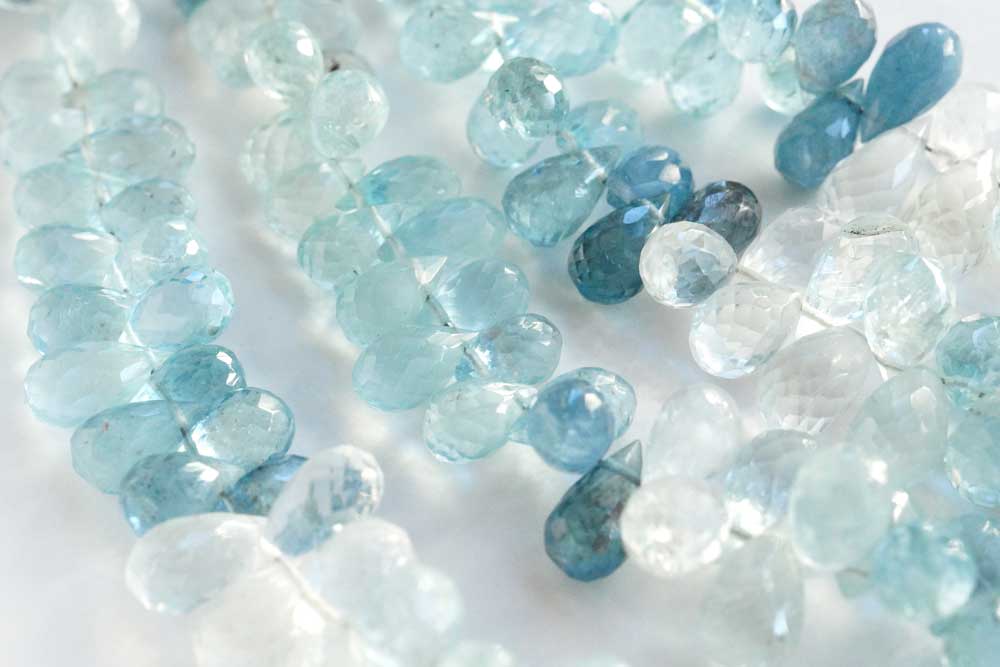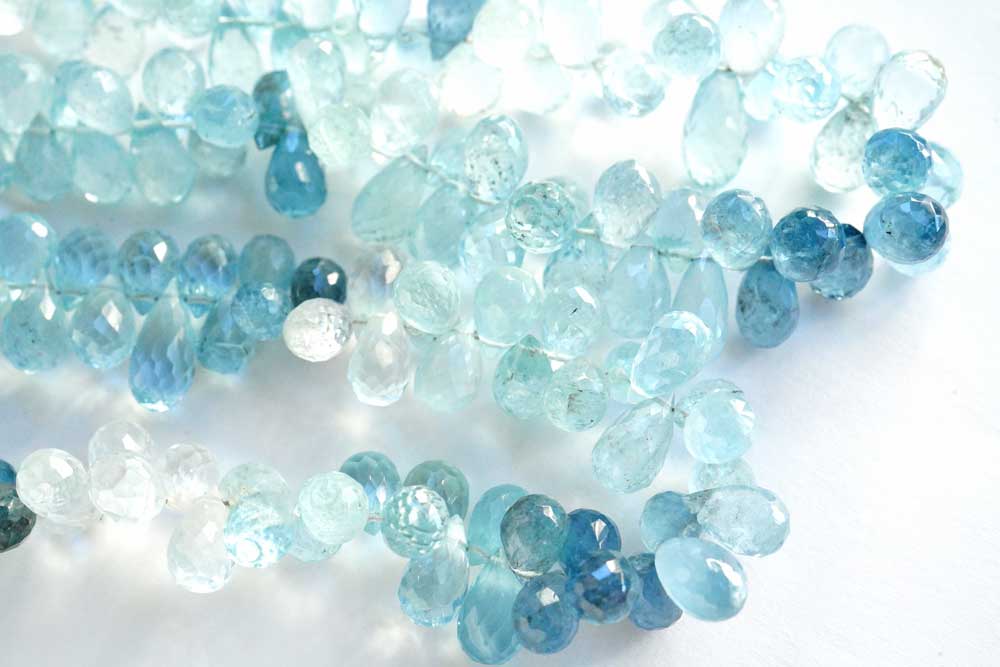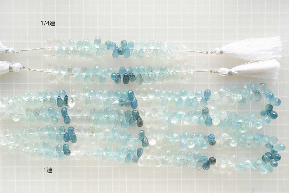 (1/4連,半連,1連)サンタマリアカラー アクアマリン ファセット ドロップ