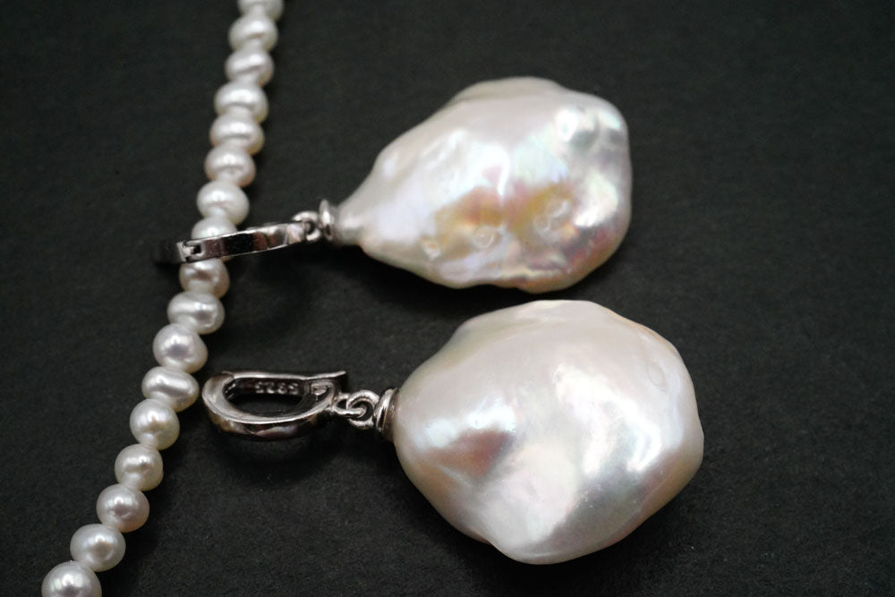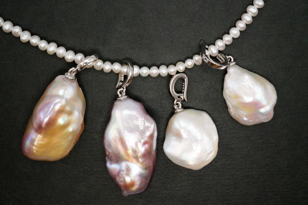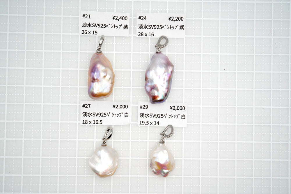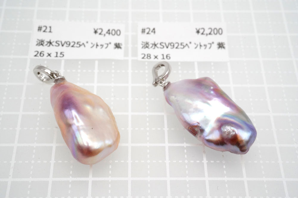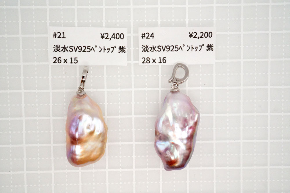 1pc入。#21.24は天然色パープル。ユニークなバロック(いびつな)パールにシルバー製のクリッカーを接着したペントップ。クリッカーは大きめのパールネックレスの付け替えに使え、別売りもしている商品で、しっかりとした作りです。