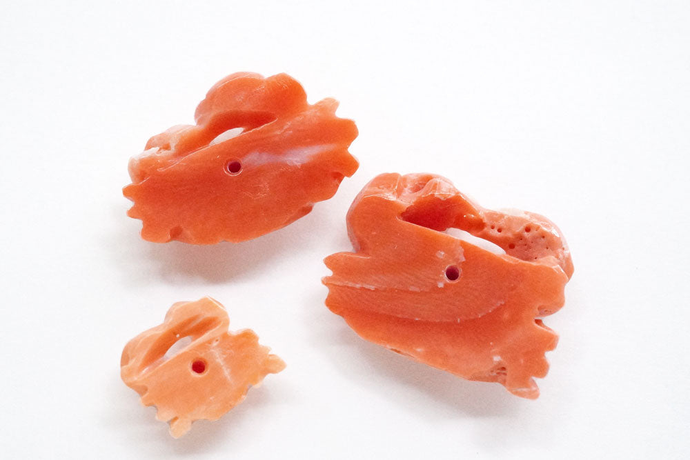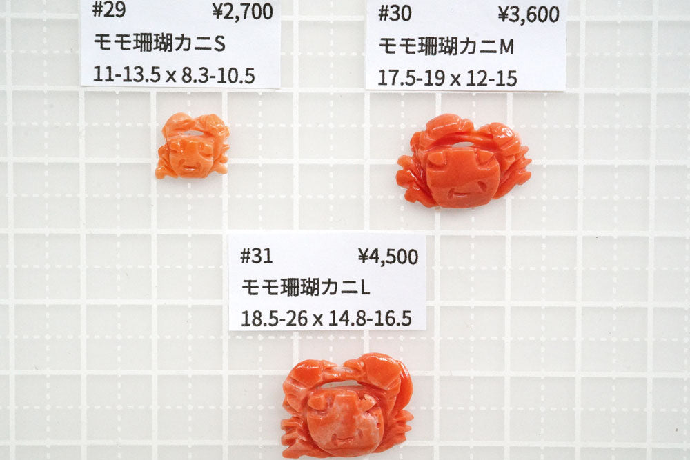 (#29-31)天然色 桃色珊瑚 カニ 彫り 裏面片穴あき カービング