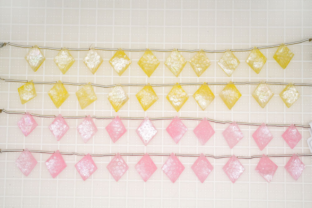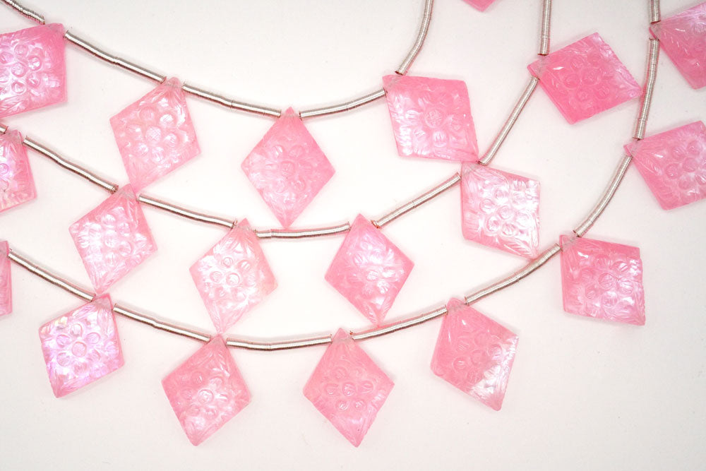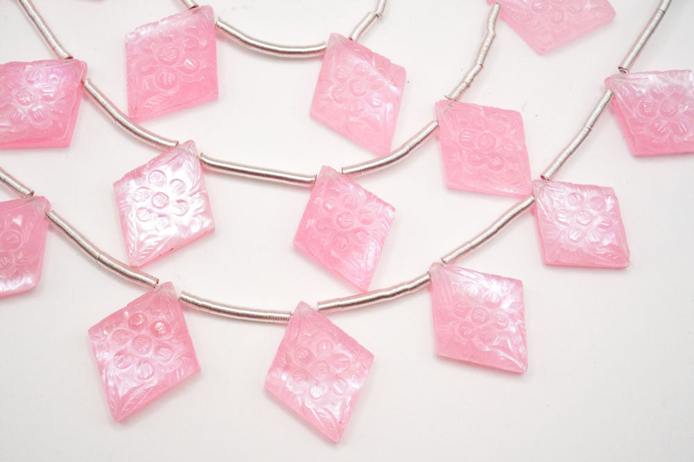 • 画像をギャラリービューアに読み込む, (2pc/1連)ピンククォーツァイト MOP シェル フラワーカービング