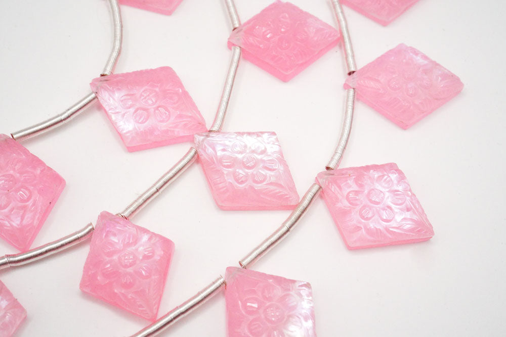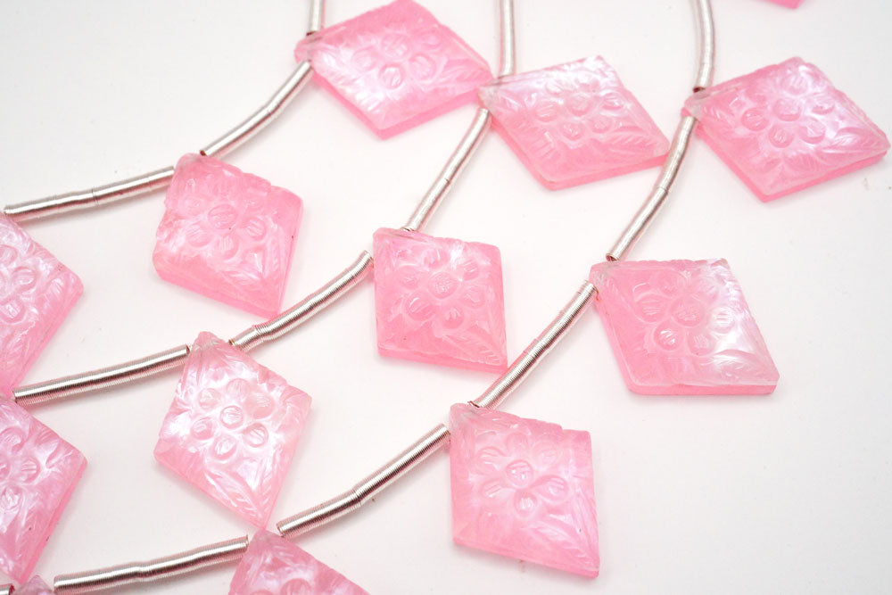 (2pc/1連)ピンククォーツァイト MOP シェル フラワーカービング