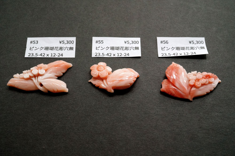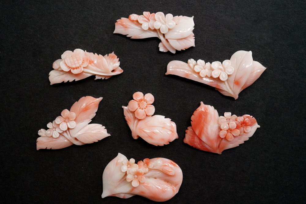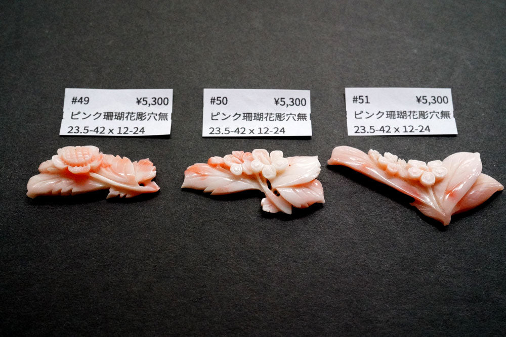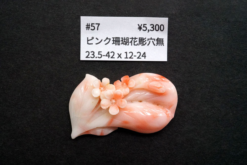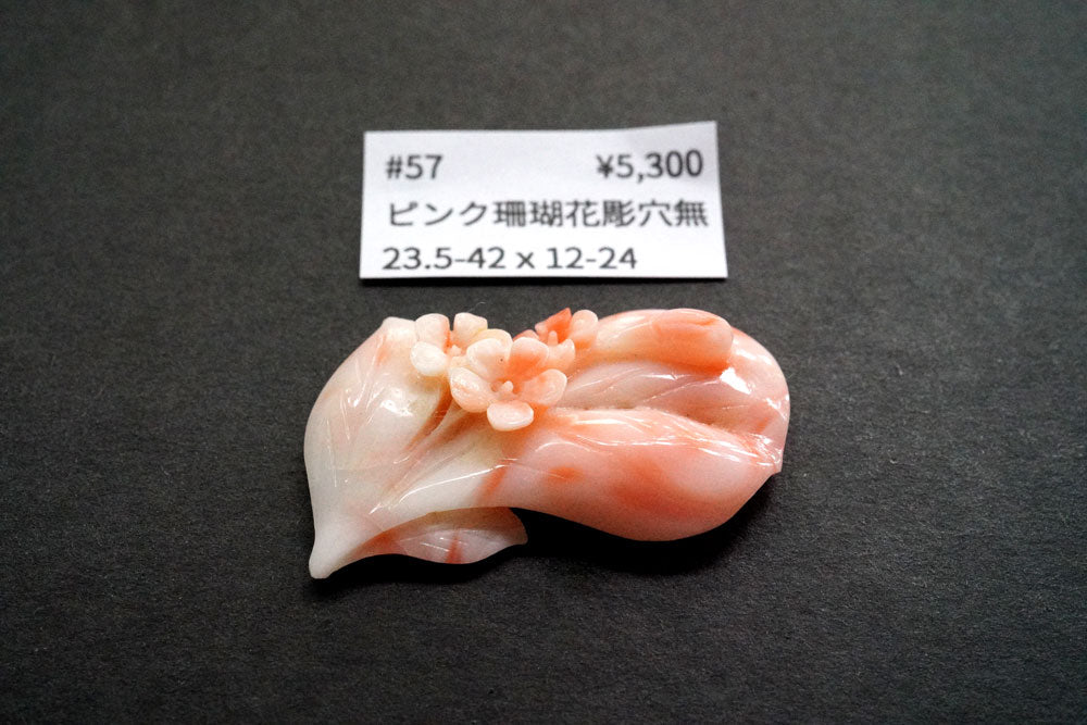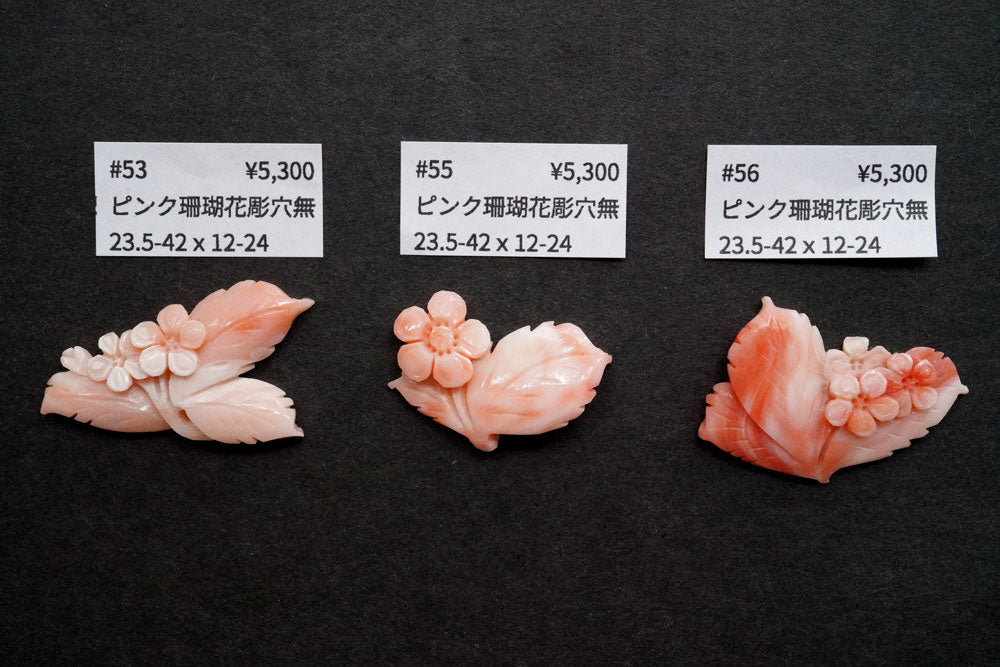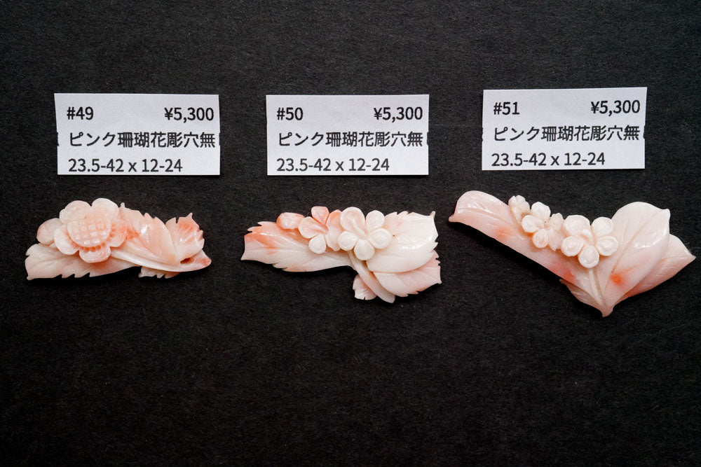 (#49-57) 天然色 ピンク珊瑚 お花 彫り フラワーカービング カボション ルース