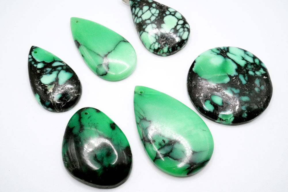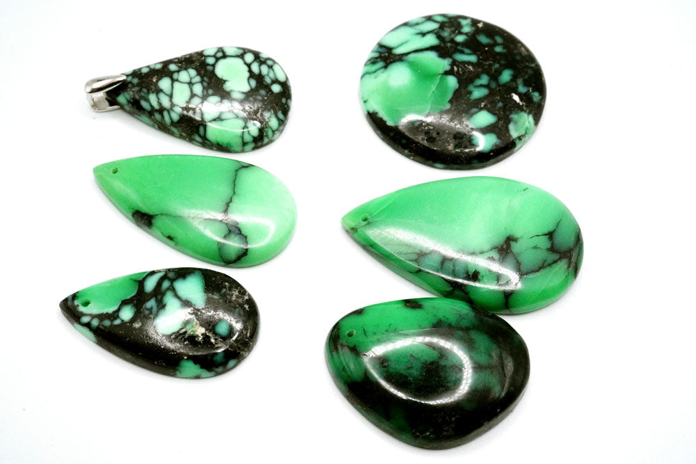 バリサイトはリン酸アルミニウム鉱物で、自然由来のグリーンの濃淡やマトリックス(母岩模様)が魅力。