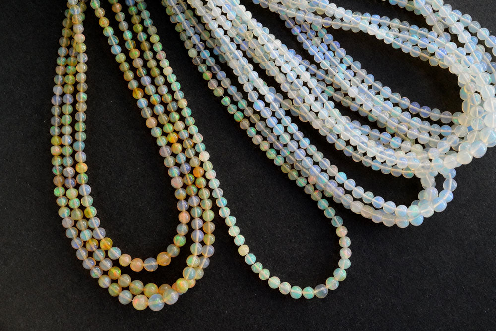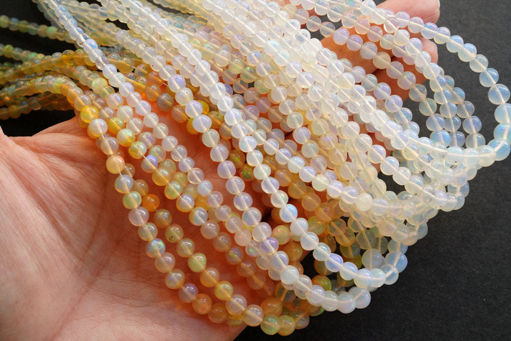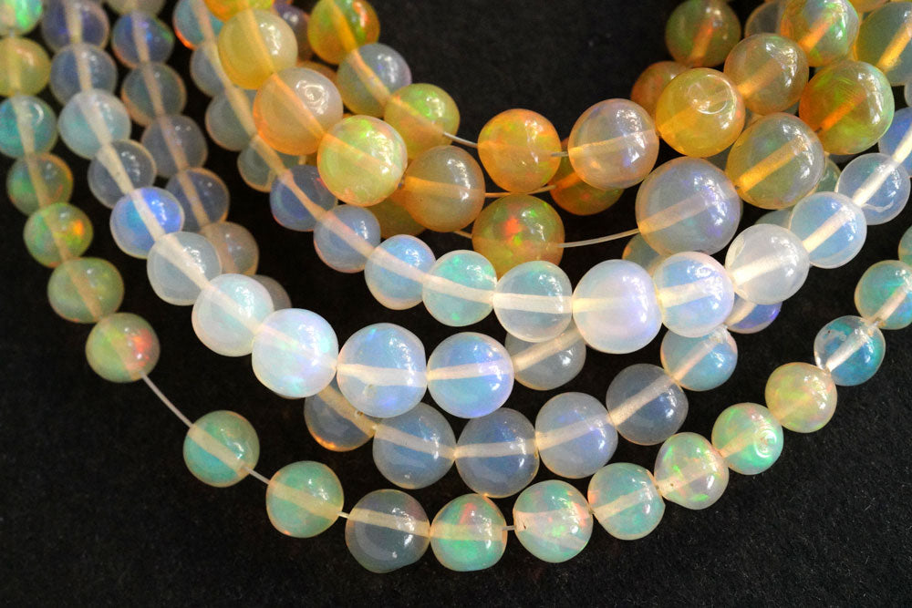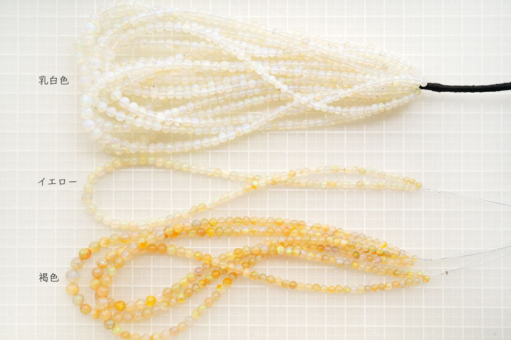 ・色合い・・・乳白色、イエロー、褐色。どの粒からも遊色が見られます