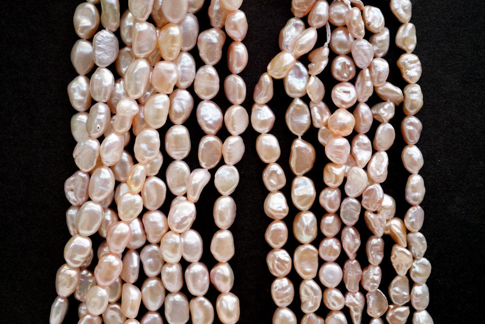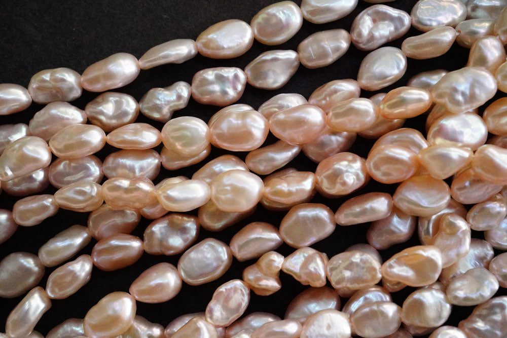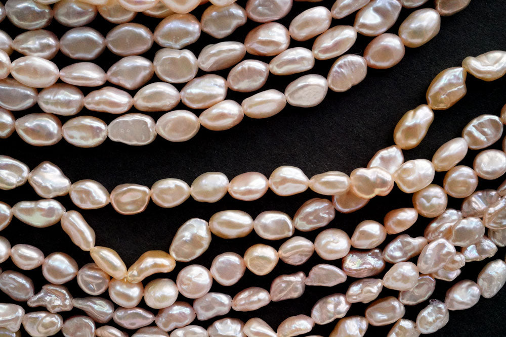 てりツヤの良い縦長のケシ風バロック。フラットな粒が入ります。